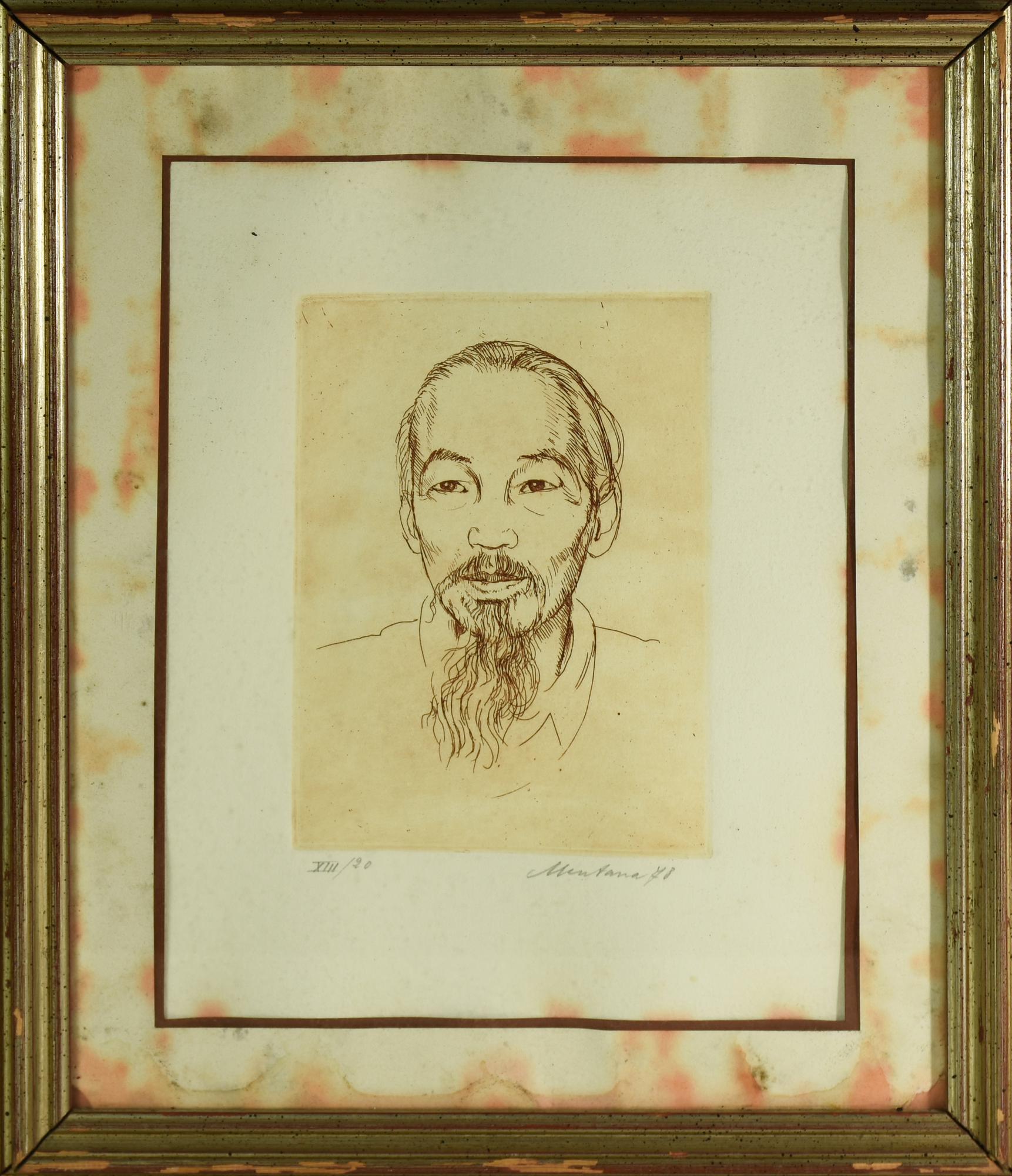 Mentana HO-CHI-MINH, 1978 acquaforte-acquatinta su carta, battuta cm 23,5x18,...