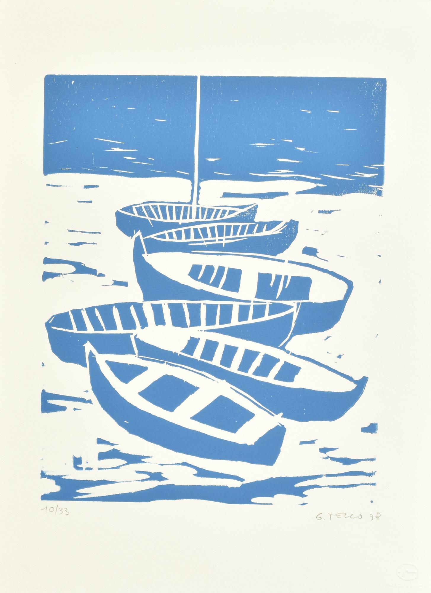 G. Tello BARCHE xilografia su carta, cm 39x29; es 10/33 firma e data eseguita...