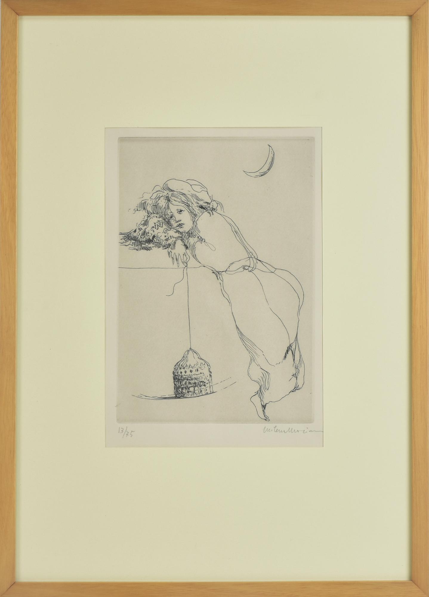 Milena Moriani GIOVANE DONNA CON PENDOLO incisione su carta, battuta cm...