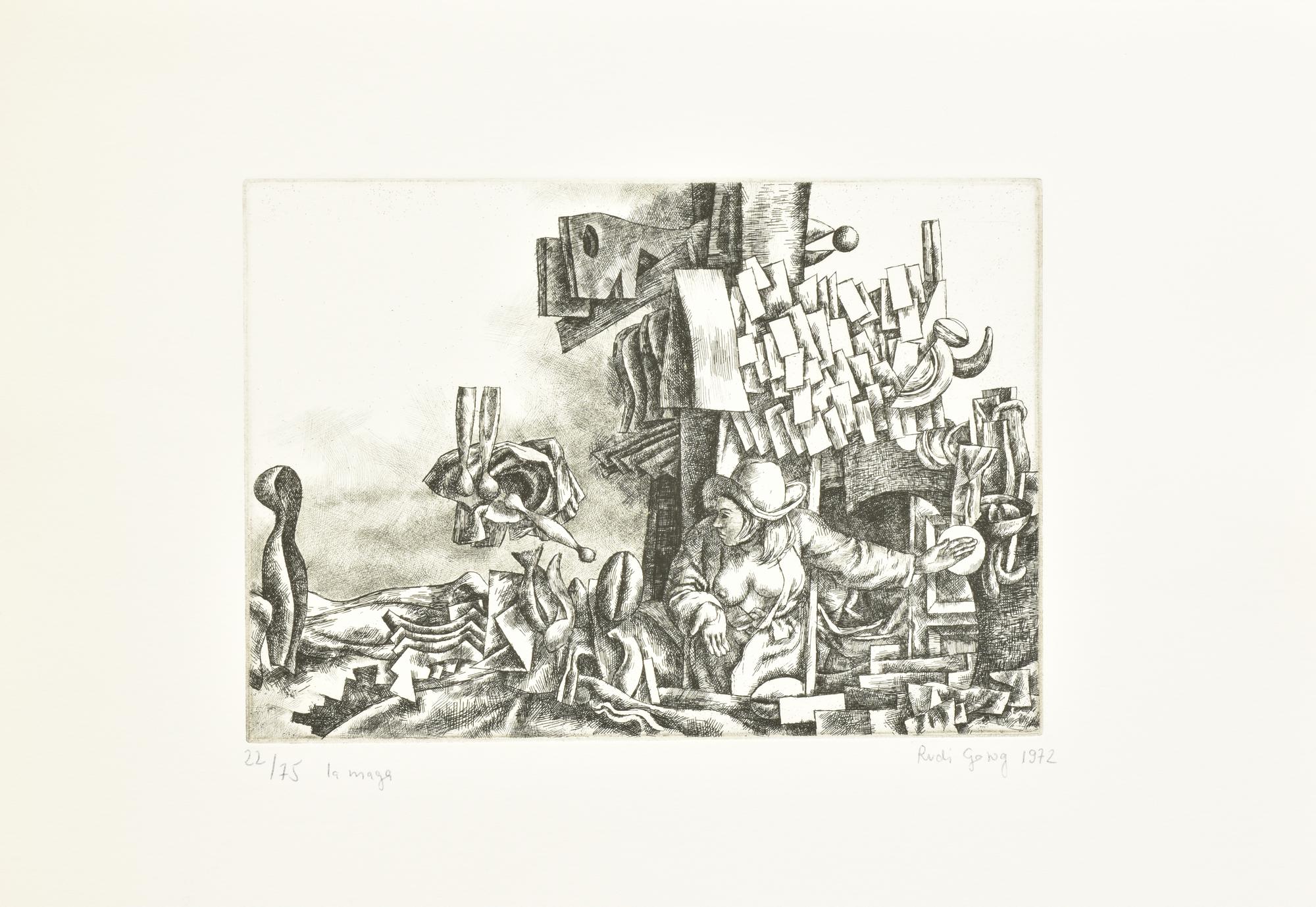 Rudi Gorog LA MAGA incisione su carta Fabriano, battuta cm 19,5x27,5, su...