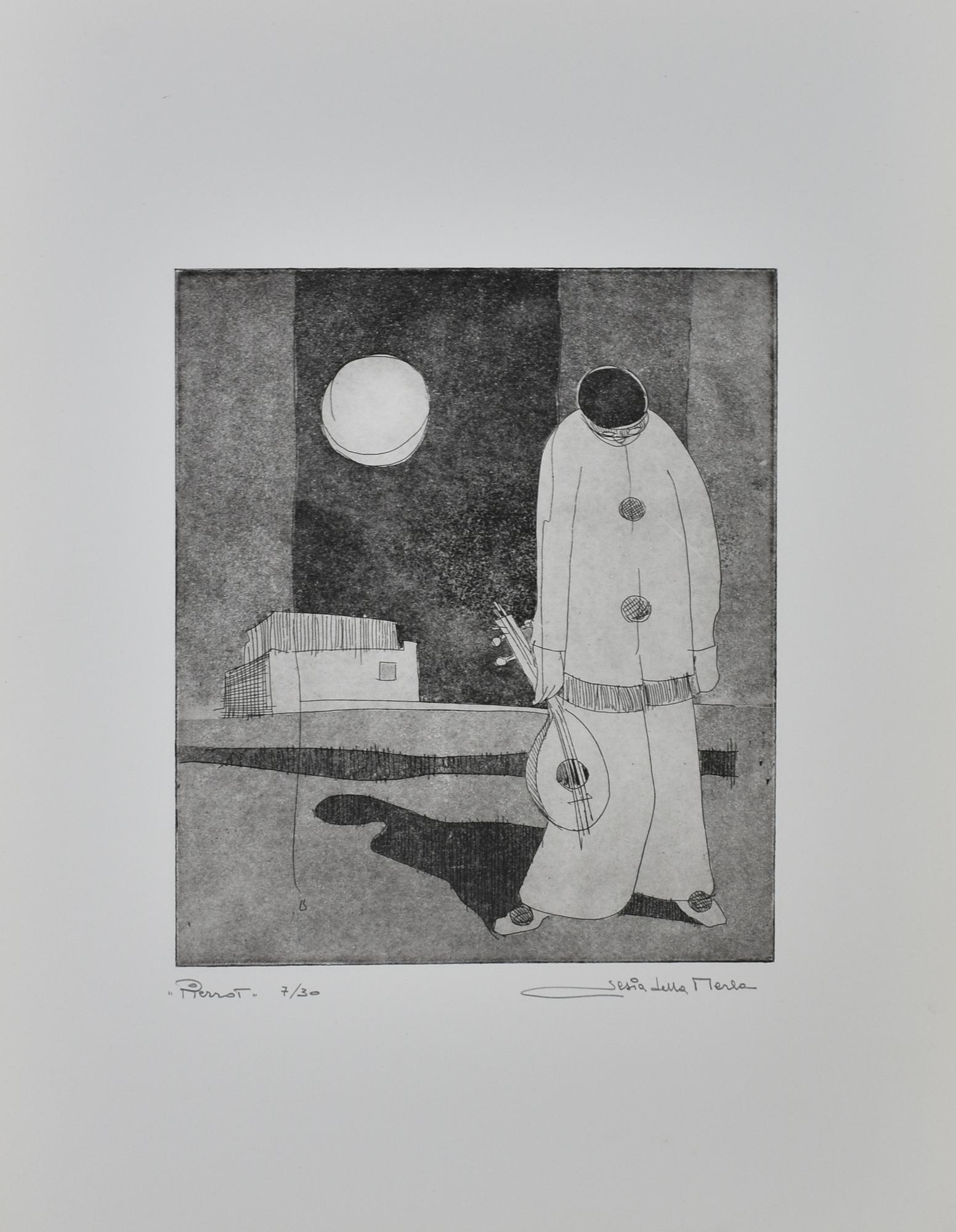 Gianni Sesia della Merla PIERROT incisione su carta, battuta cm 27x21; su...