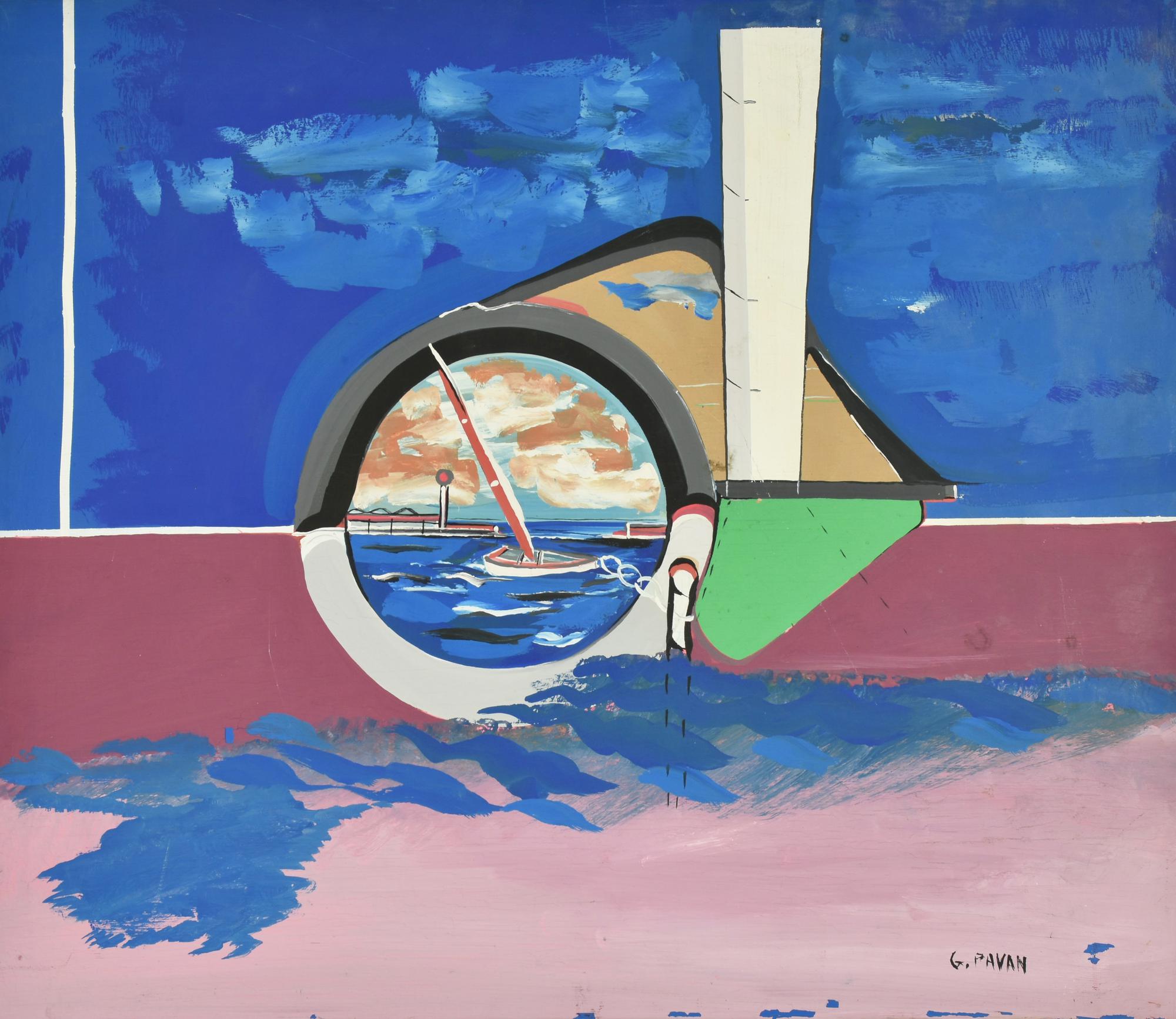 G. Pavan USCITA DAL PORTO acrilico su tela, cm 60x70 firma L'opera oresenta...