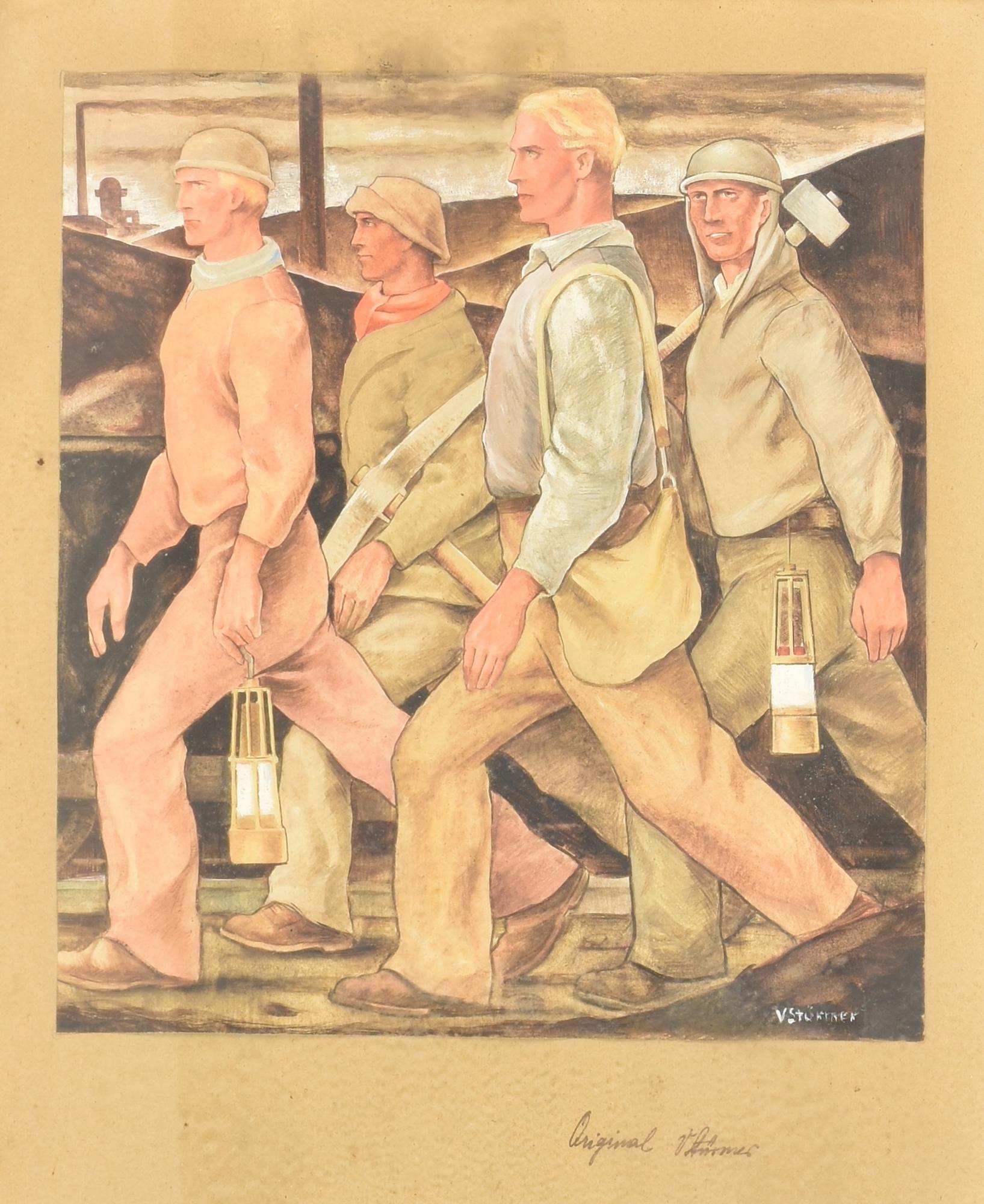 V. Stuckrack MINATORI tecnica mista su carta, cm 27x24 firma