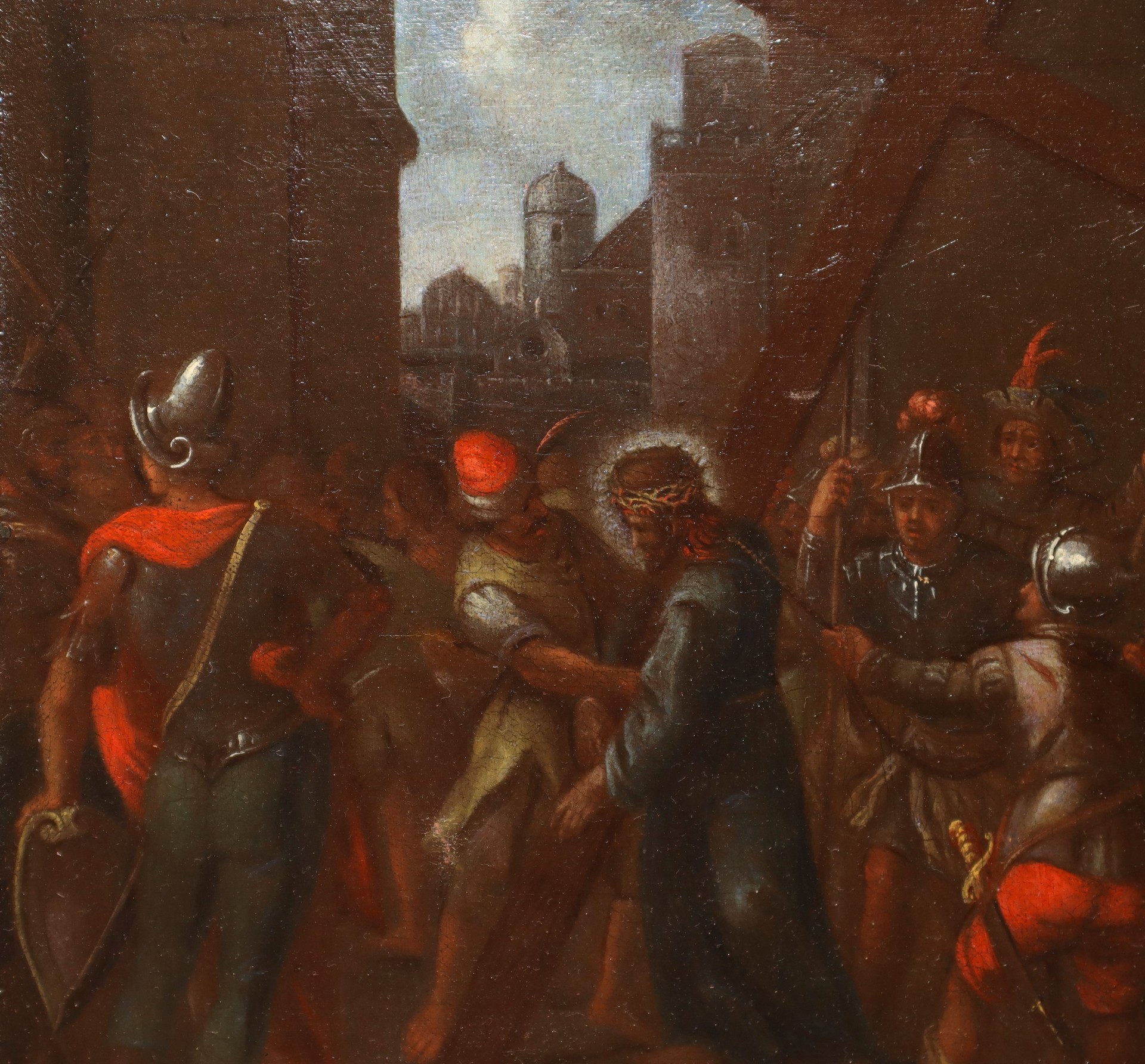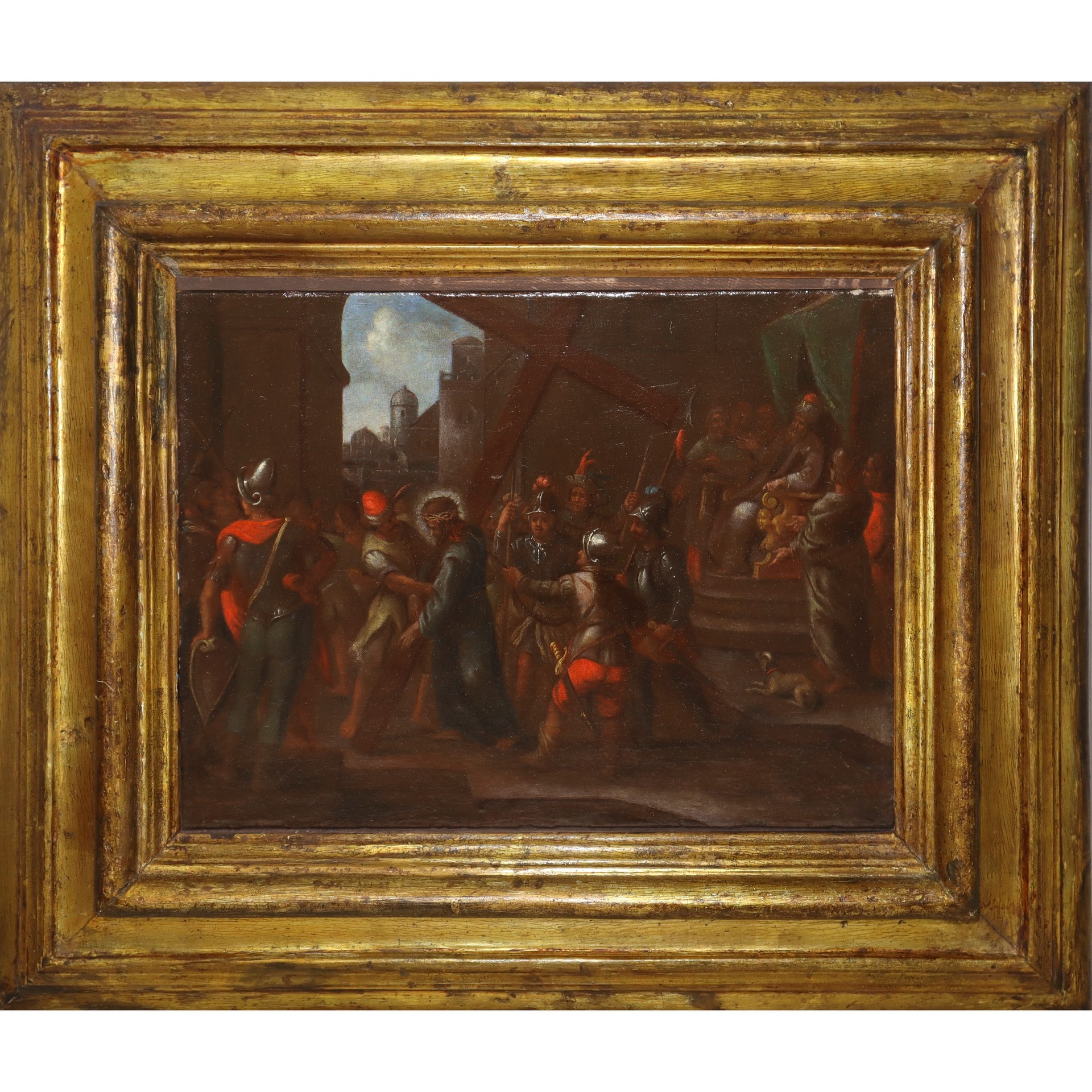 Matteo Ghidoni Detto Matteo de' Pitocchi (Firenze 1626-Padova 1689) - Cristo davanti a Caifa 28x38. in cornice cm 49x57 Dipinto ad olio su tela Corredato da Perizia del Prof .Strinati che valuta l'opera di un valore pari a € 15.000