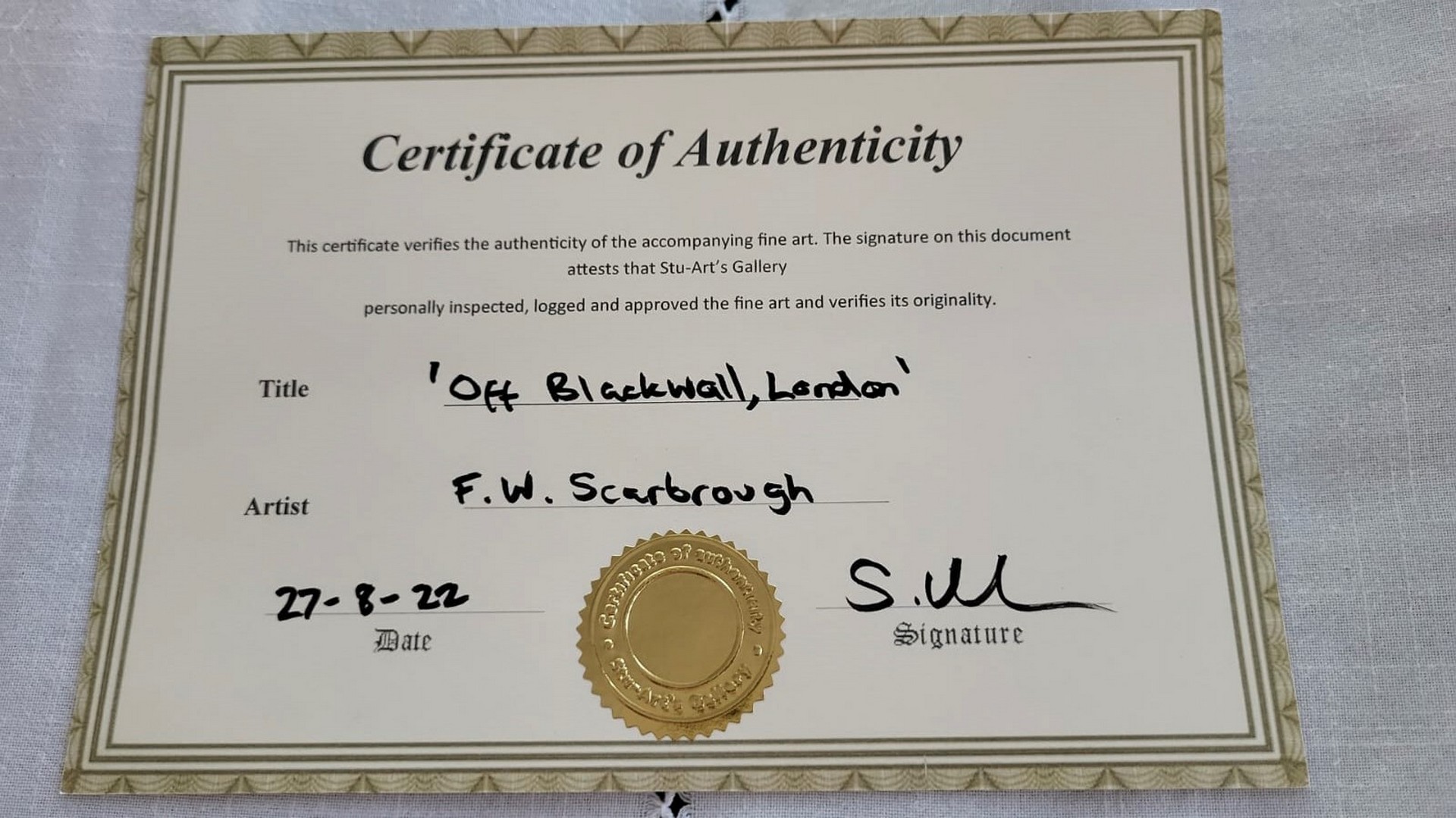 Frederick William Scarborough (British 1860-1939) - Blackwall, London. Cm 26x35, in cornice cm 53x60 Acquerello su carta Piccola crepa. Firmato in basso a destra.