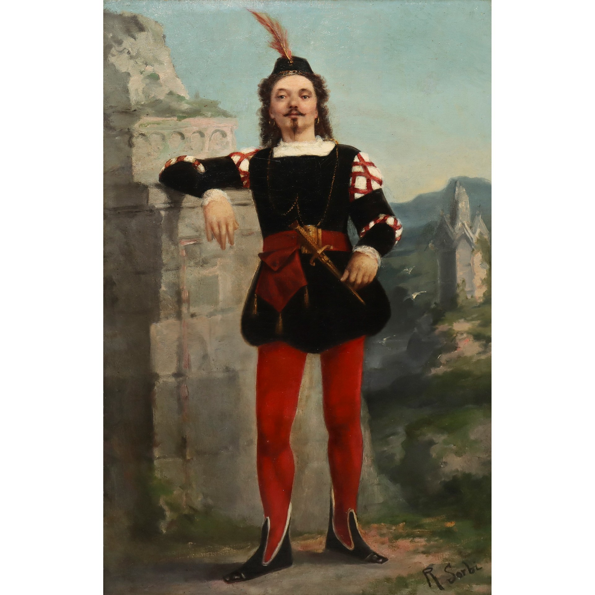 Raffaello Sorbi (Firenze 1844-Firenze 1931) - Sparafucile , dall'opera Rigoletto Cm 74x45, in cornice 90x60 Dipinto ad olio su tela Firmato in basso a destra R.Sorbi. In cornice coeva