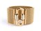 fascia morbida a maglie intrecciate e motivo a fibbia centrale in oro giallo ed oro bianco 18k, manifattura Giuseppe Repossi attivo dagli anni '30.