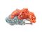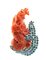 ASCIONE: spilla in oro, corallo cerasuolo e diamanti blu