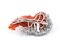con corallo cerasuolo (corallium elatius) intagliato raffigurante un drago marino contornato da diamanti blu.