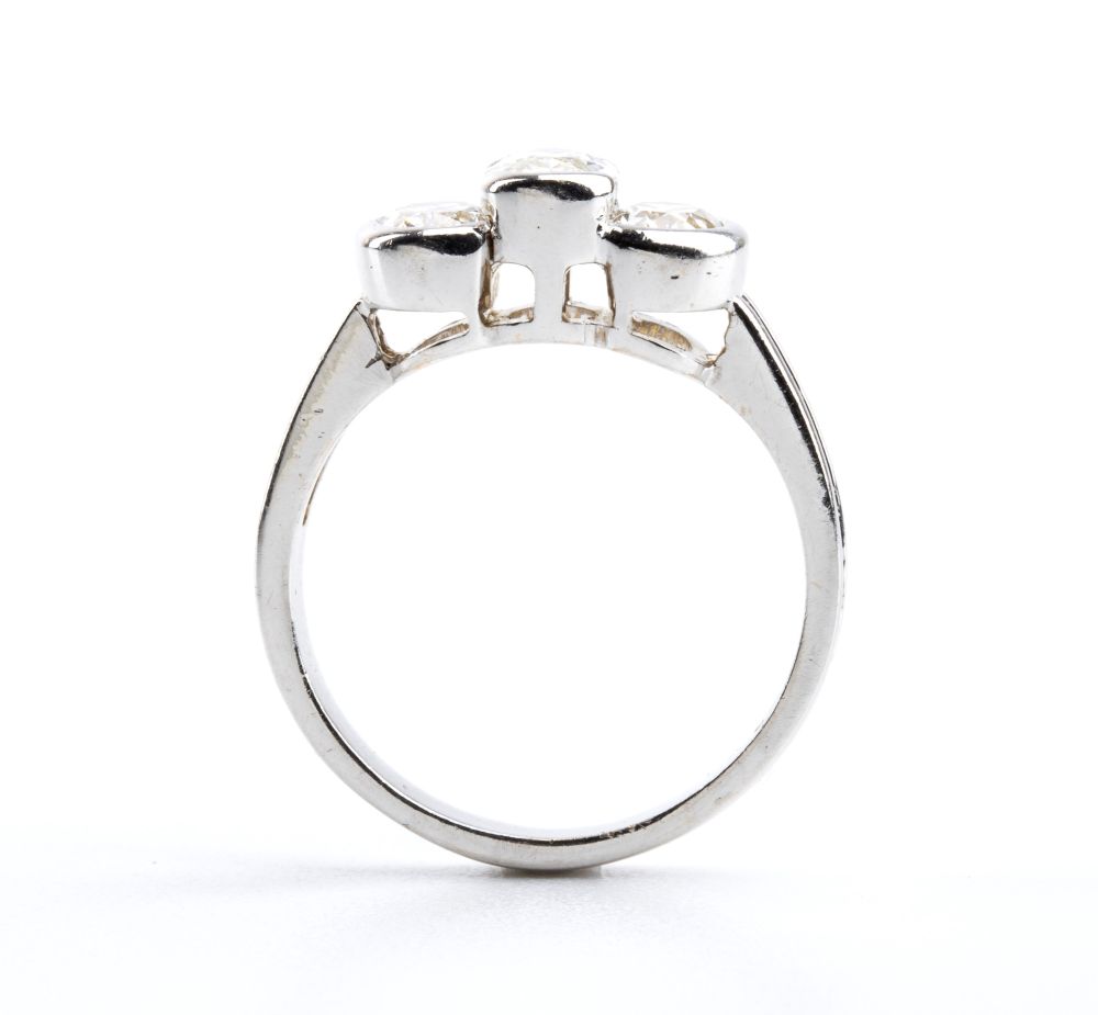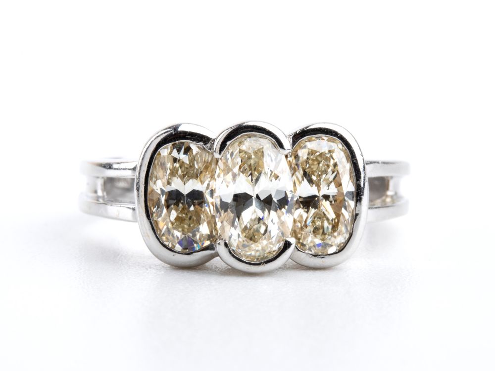 N. 03 diamanti di forma ovale, taglio brillante modificato, rispettivamente 0,55 ct, 0,43 ct e 0,45 ct circa, J-K, VVS.