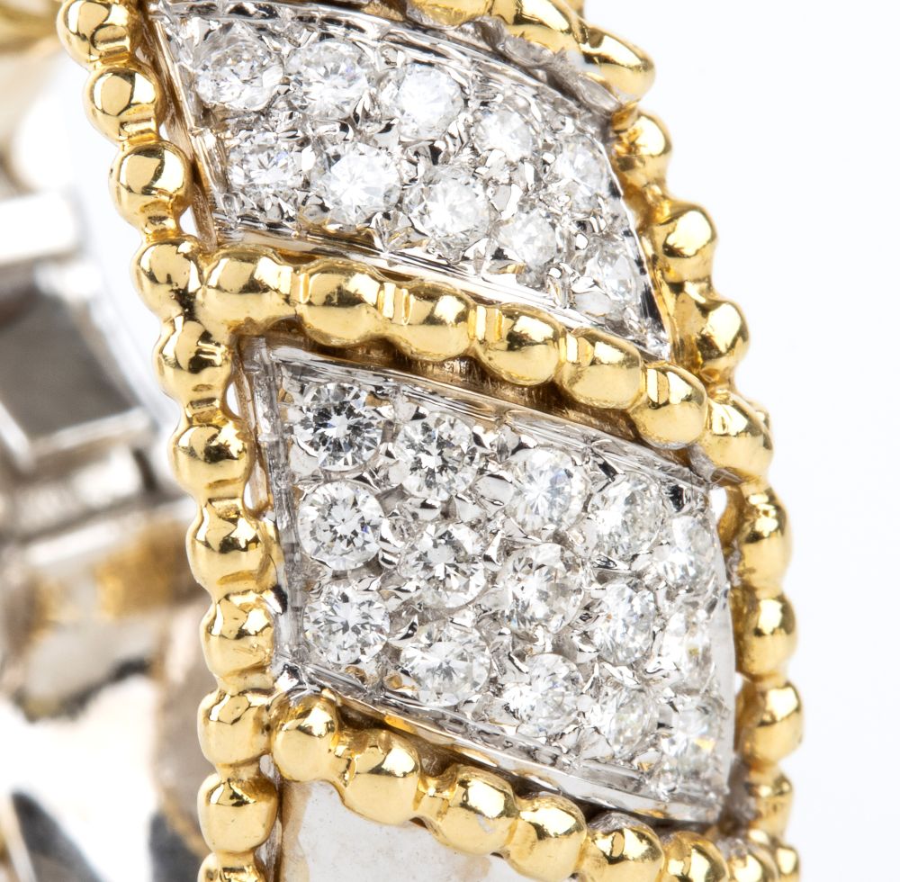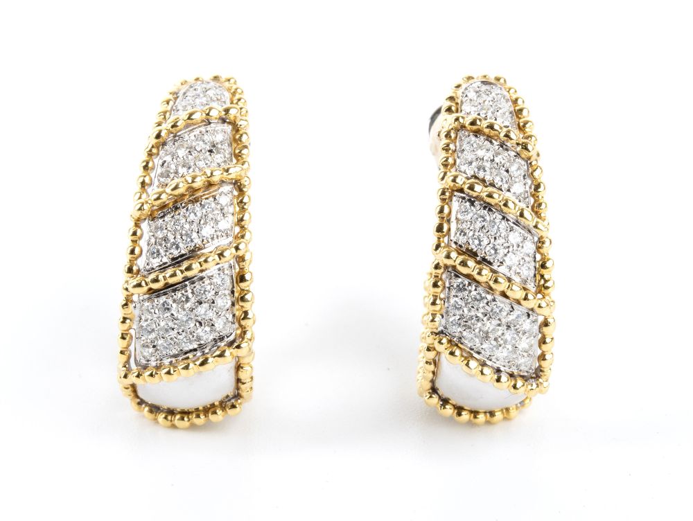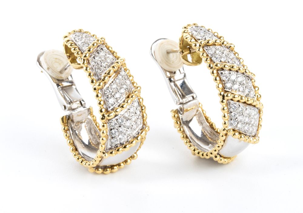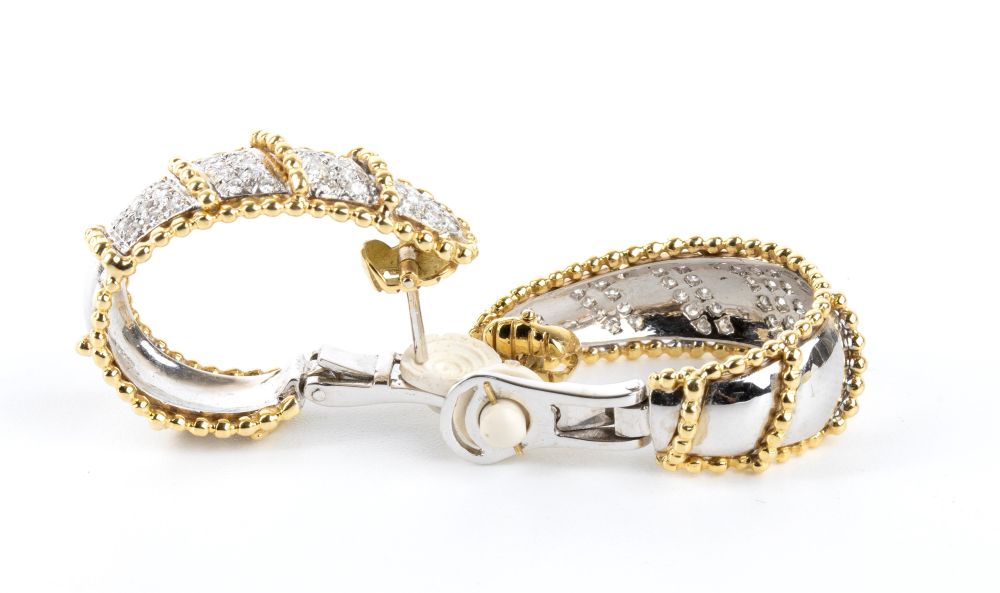 Punzonato "750 - 18k - 1032 AL". Dimensioni 2,8 x 1 cm. Peso complessivo 16,8 gr.
