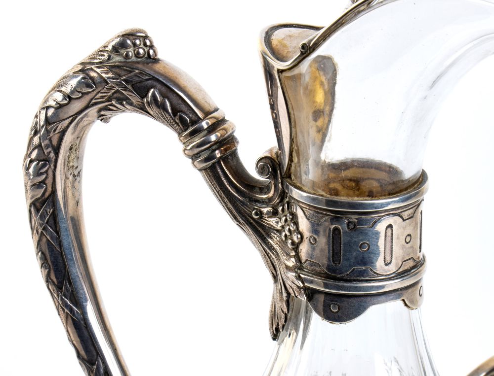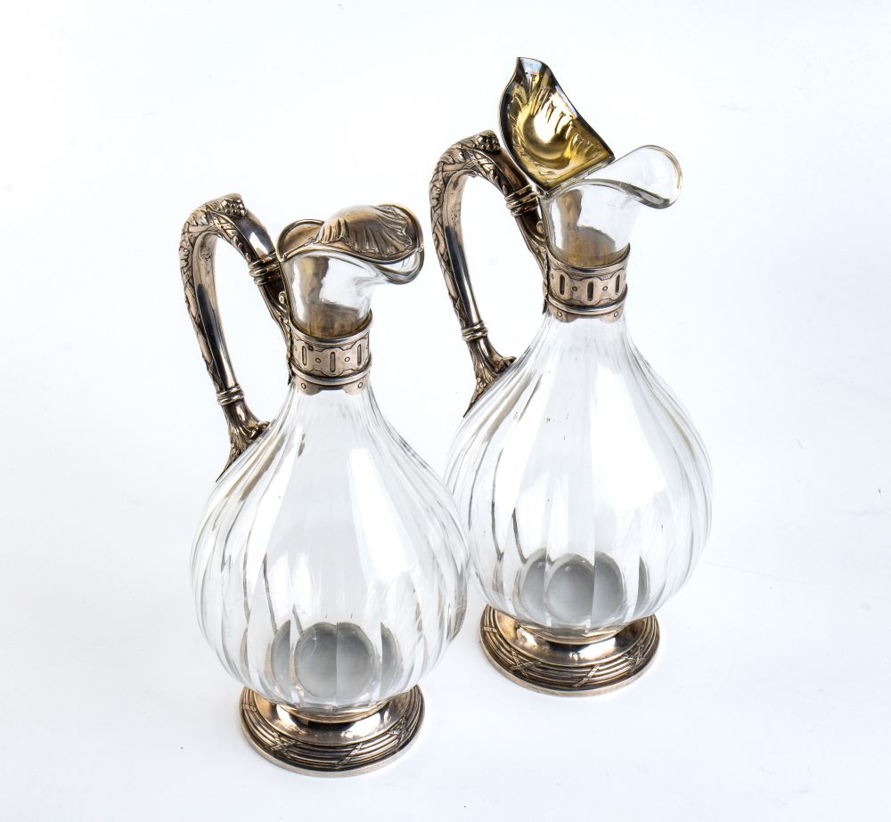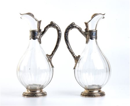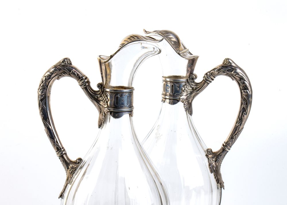 Coppia di caraffe in argento e vetro molato - Francia inizio XX secolo, argentiere AMÉLIE CARDEILHAC