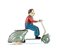 cm.30x20x20 Giocattolo in latta litografata, VESPA faro basso con personaggio alla guida, meccanismo di carica a molla. Originale. Fine anni '940