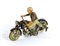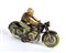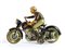 Latta cm. Motocicletta della ARNOLD modello MAC700 , Made in US Zone Germany, latta litografata. Versione colore nero. Meccanismo di carica a molla funzionante, la moto cammina, si ferma ed il pilota simula la discesa e la risalita in sella della motocicletta. In buone condizioni generali
