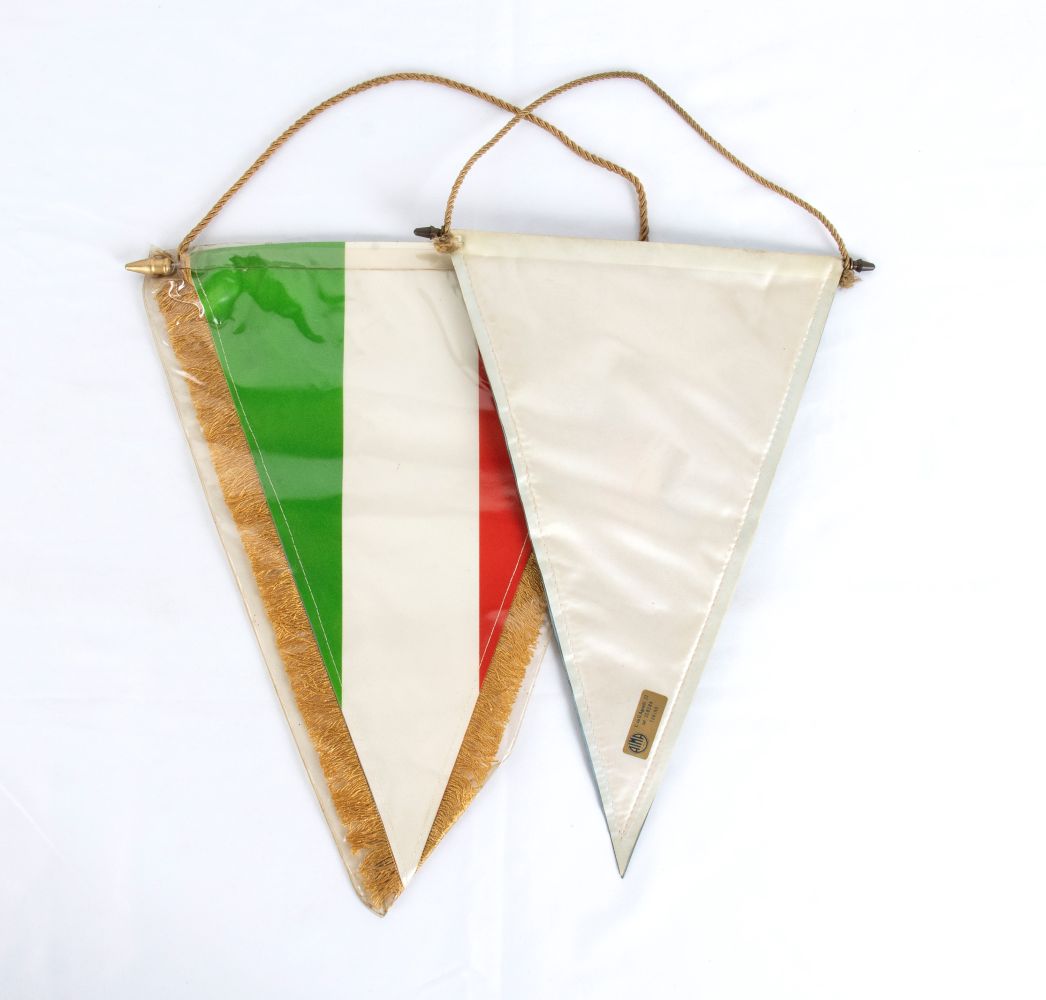 sintetica cm.30, cm39 Lotto di due gagliardetti in materiale sintetico stampati, SS CALCIO NAPOLI SETTORE GIOVANILE per il titolo di CAMPIONE D'ITALIA PRIMAVERA 1978-79 marcato AI.MA.Torino,e FIGC Federazione Italiana Giuoco Calcio con frangia applicata e tricolore al retro. In confezione originale, con aste in metallo. Ottime condizioni