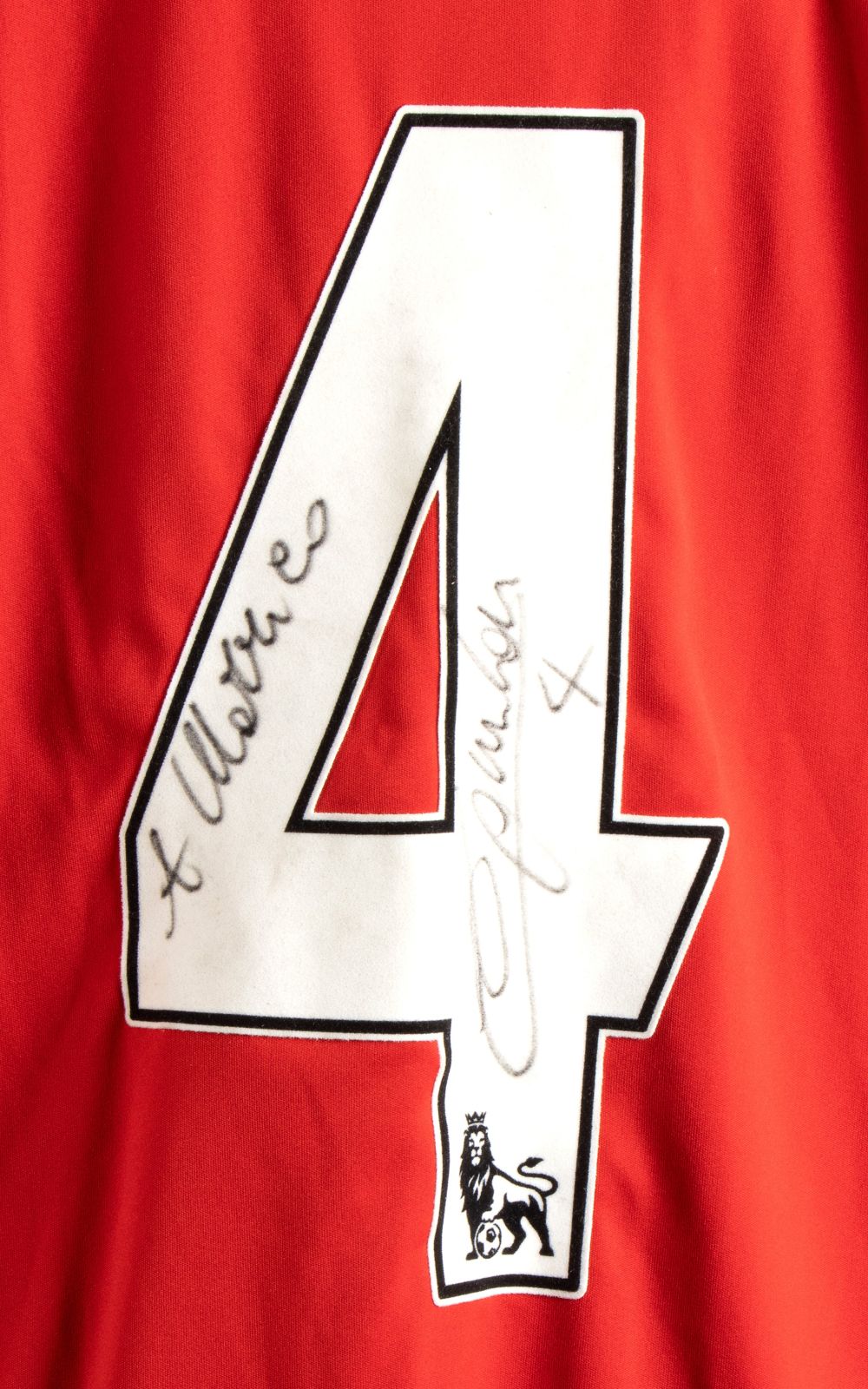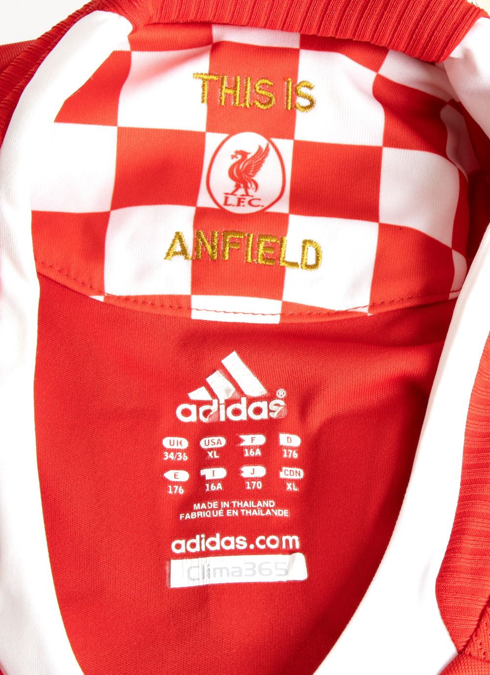 Jersey Maglia di calcio del LIVERPOOL numero 4, appartenuta ed autografata da Alberto Aquilani. Stagione calcistica 2009-2010. Produzione Adidas, sponsor Carlsberg, patch stampata Barclays Premier League, "This Is Anfield" ricamato all'interno del collo. Maglia in ottime condizioni, qualche segno del tempo, macchie sparse.