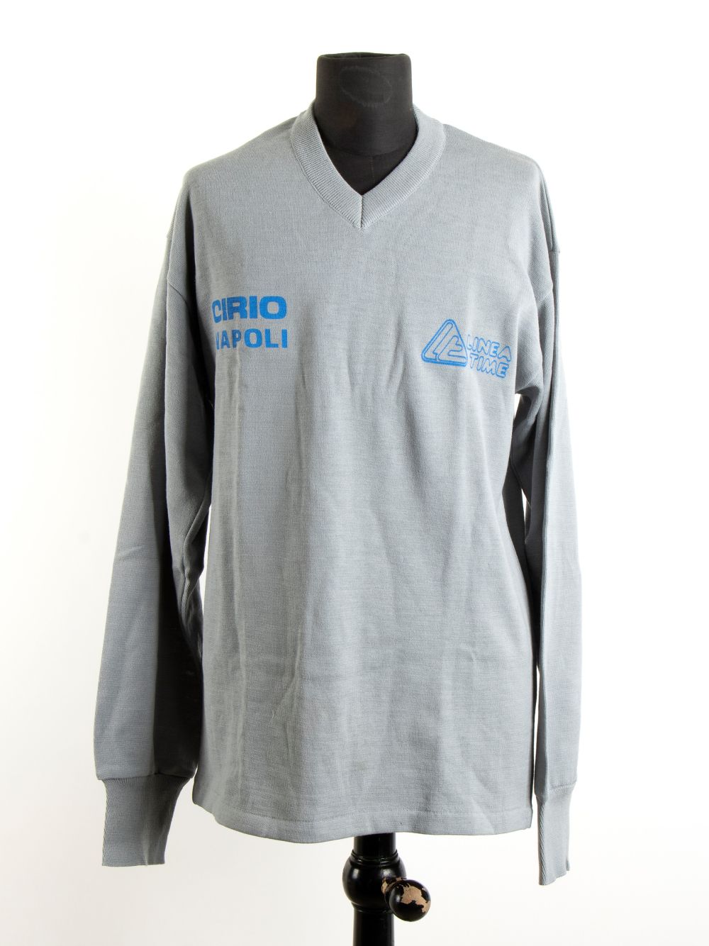 cotone Maglia di calcio da allenamento SSC NAPOLI , usata nella stagione 1984-85, numero 11 . Maglia in cotone pesante, maniche lunghe, sponsor CIRIO stampato a caldo sul petto, produzione LINEA TIME stampato sul petto e su etichetta interna al collo. Numero 11 stampato a caldo. La maglia è certificata dal "mister" Rino Marchesi allenatore del Napoli negli anni 1980-82 e 1984-85 e proviene dalla sua collezione personale. In ottime condizioni, taglia 52