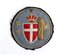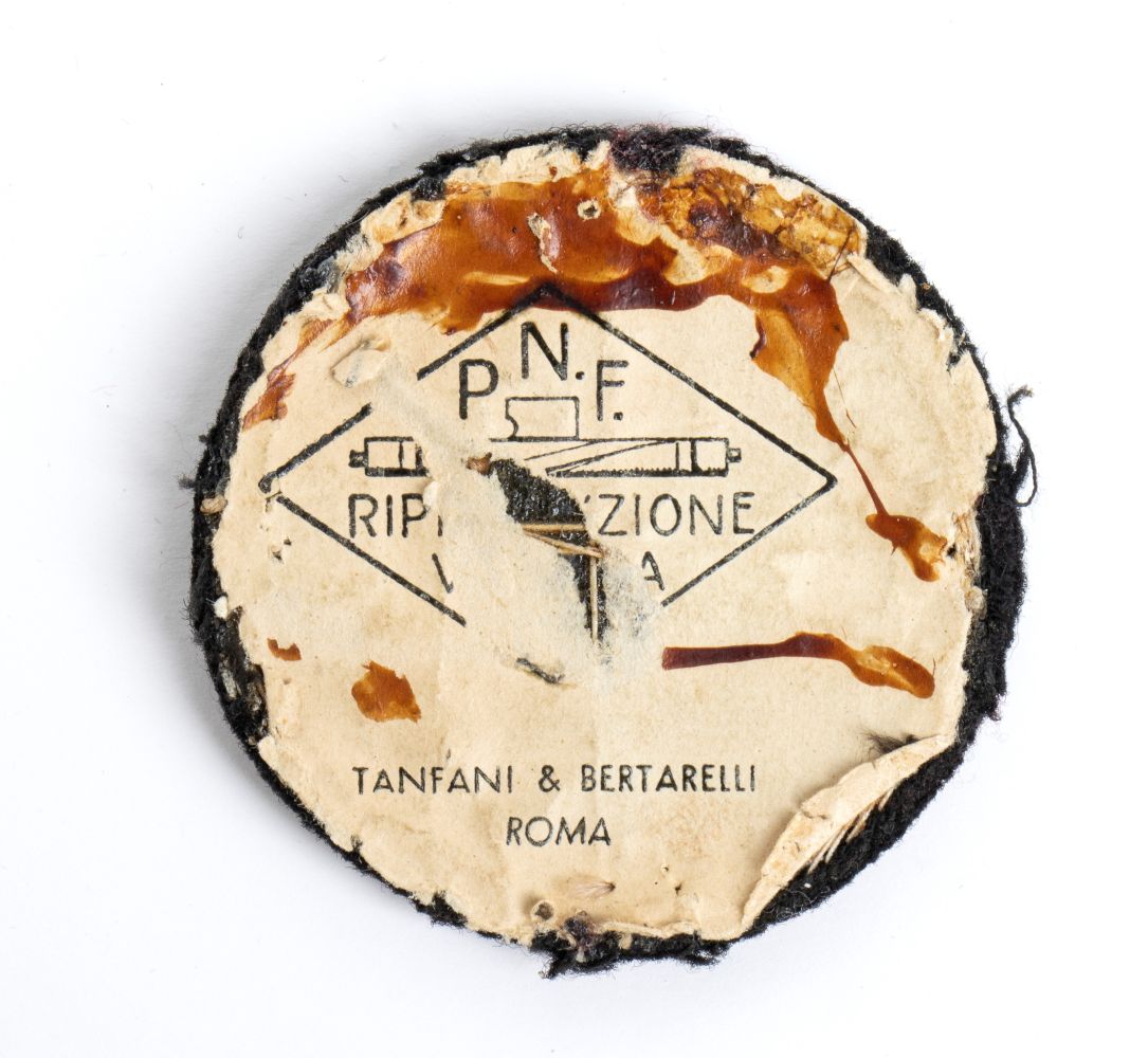stoffa Patch tonda in cotone e canutiglia ricamata, con scudetto tricolore italiano affiancato ad un fascio littorio, e due stelle , per carica dirigenziale del CONI Comitato Olimpico Nazionale Italiano. Marcato al cartiglio posteriore Tanfani & Bertarelli