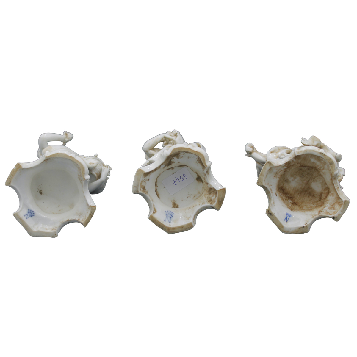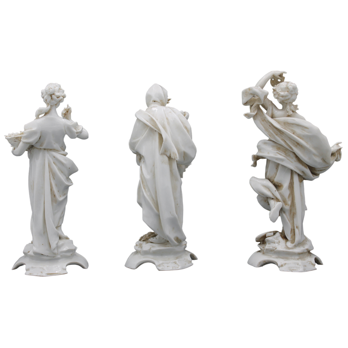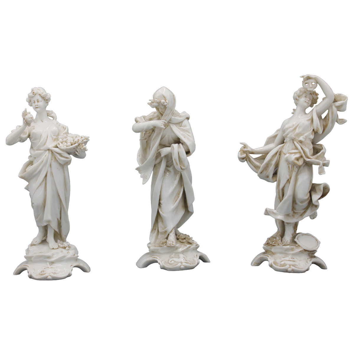 Tre piccole statue in porcellana marcata Capodimonte. Fine secolo XIX. Cm h 21