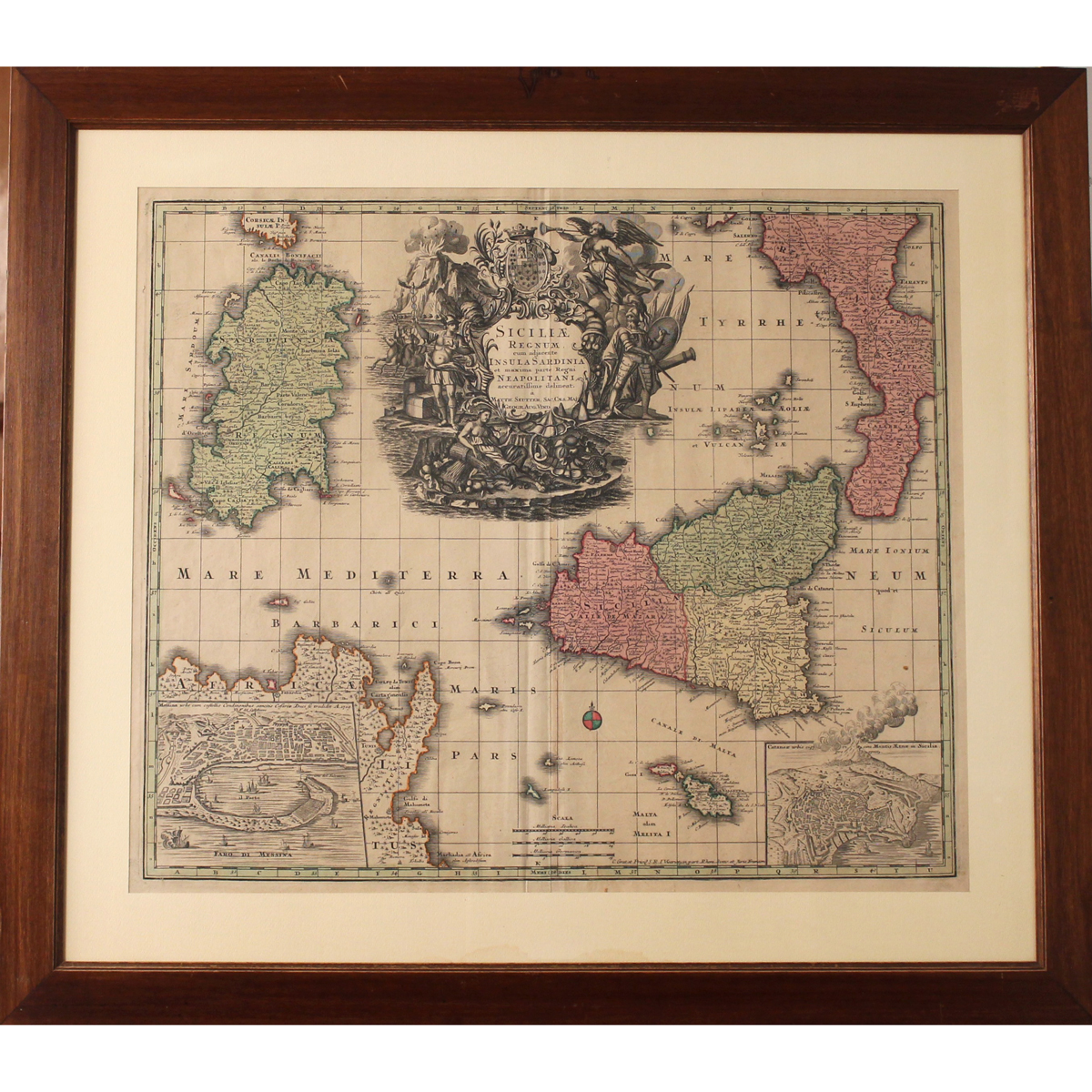 Two watercolor engravings. 19th century. 50x55 cm (Sicily); 50x60 cm (Kingdom of the two Sicilies)