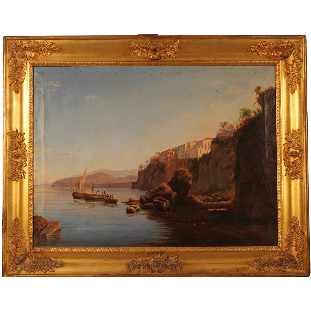 Scuola napoletana del secolo XIX "Paesaggio costiero con barche di pescatori" - Neapolitan school of the 19th century "Coastal landscape with fishing boats"