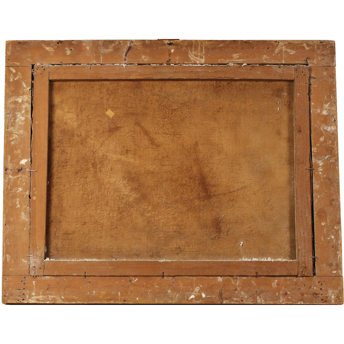 Dipinto ad olio su tela cin cornice in legno dorato con decorazioni vegetali a rilievo (danni). Cm 71x95