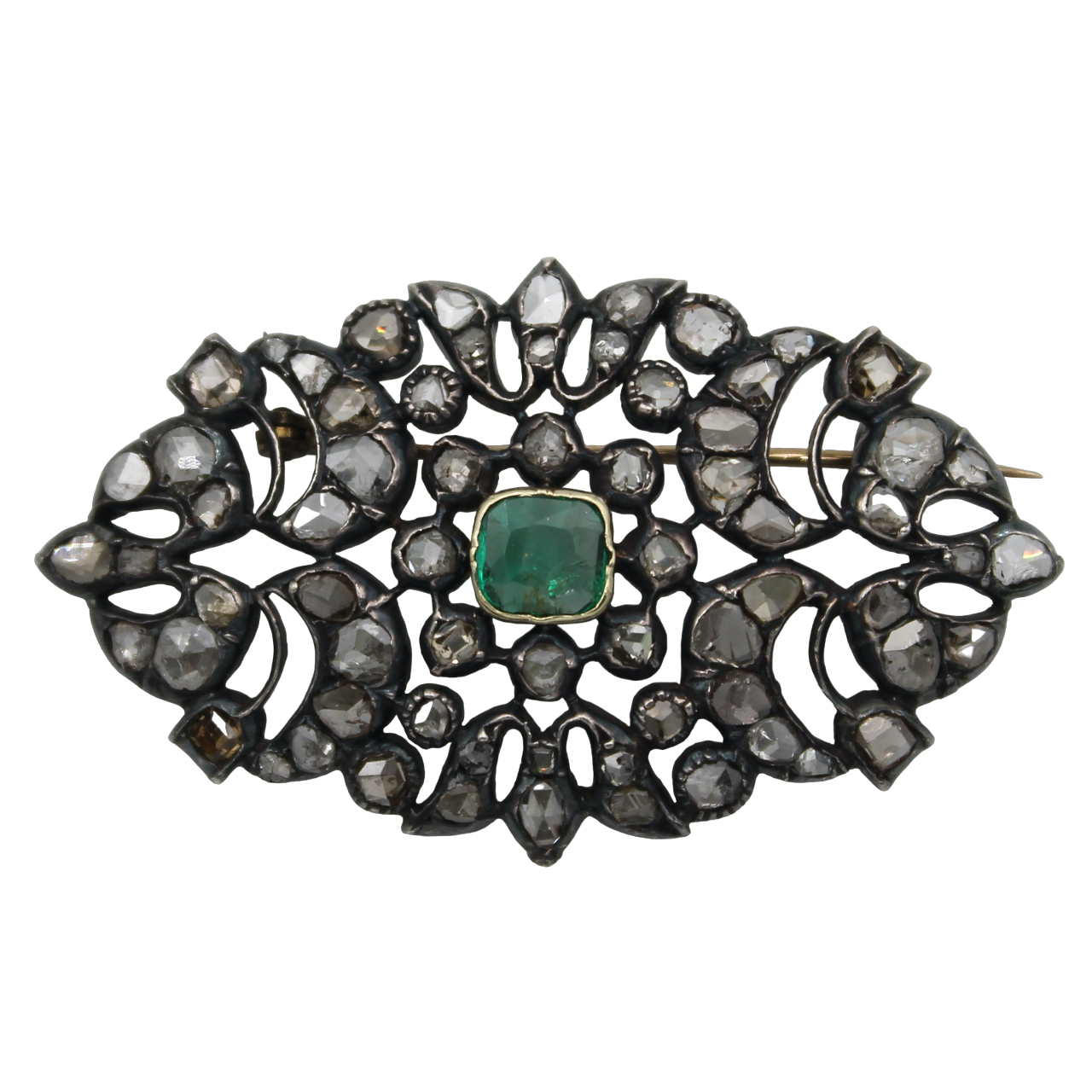 Oro di coppella, diamanti e smeraldo. Inizi secolo XX. Gr. 9,4
