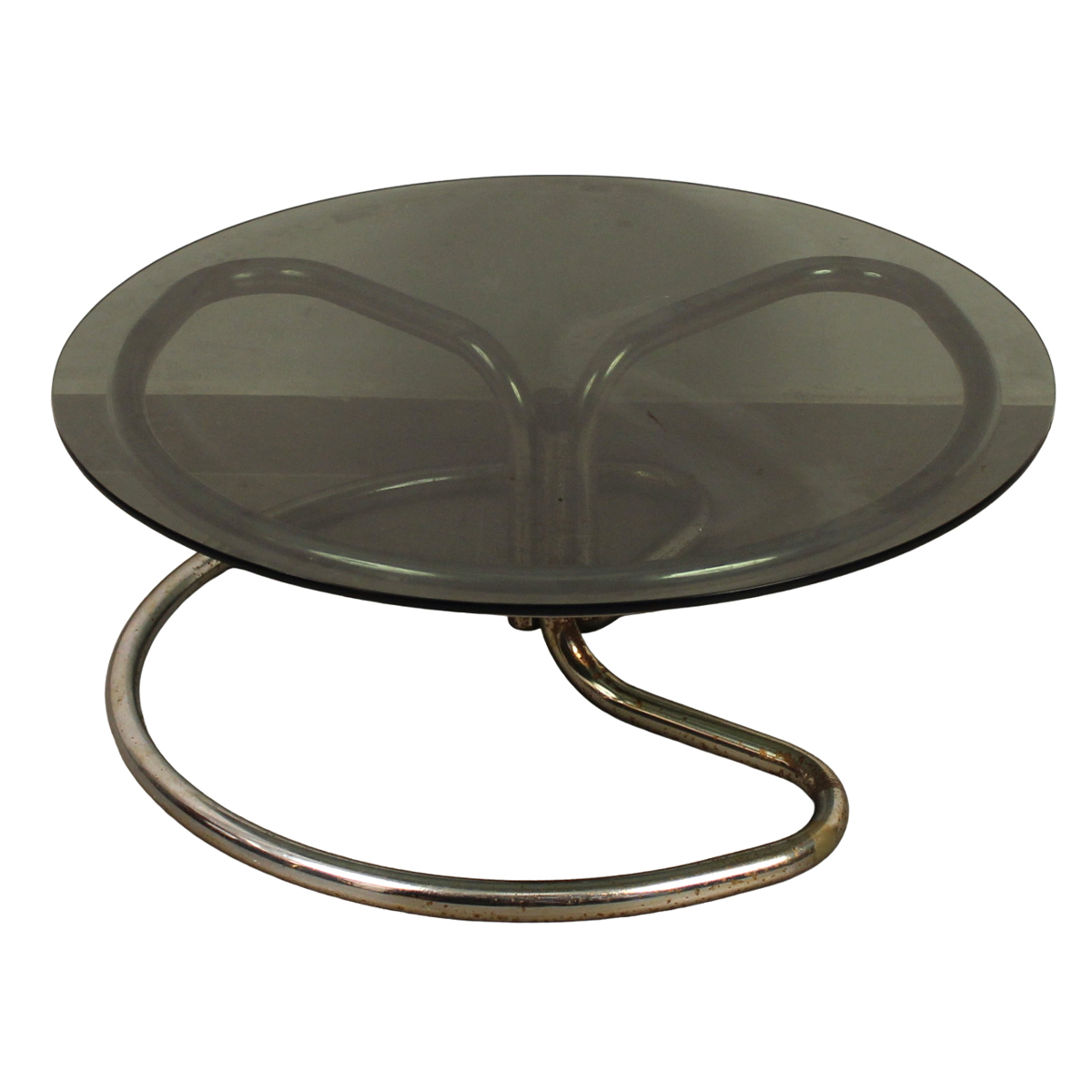 Piede in acciaio e piano in vetro. Cm h 21,5; cm d 77
