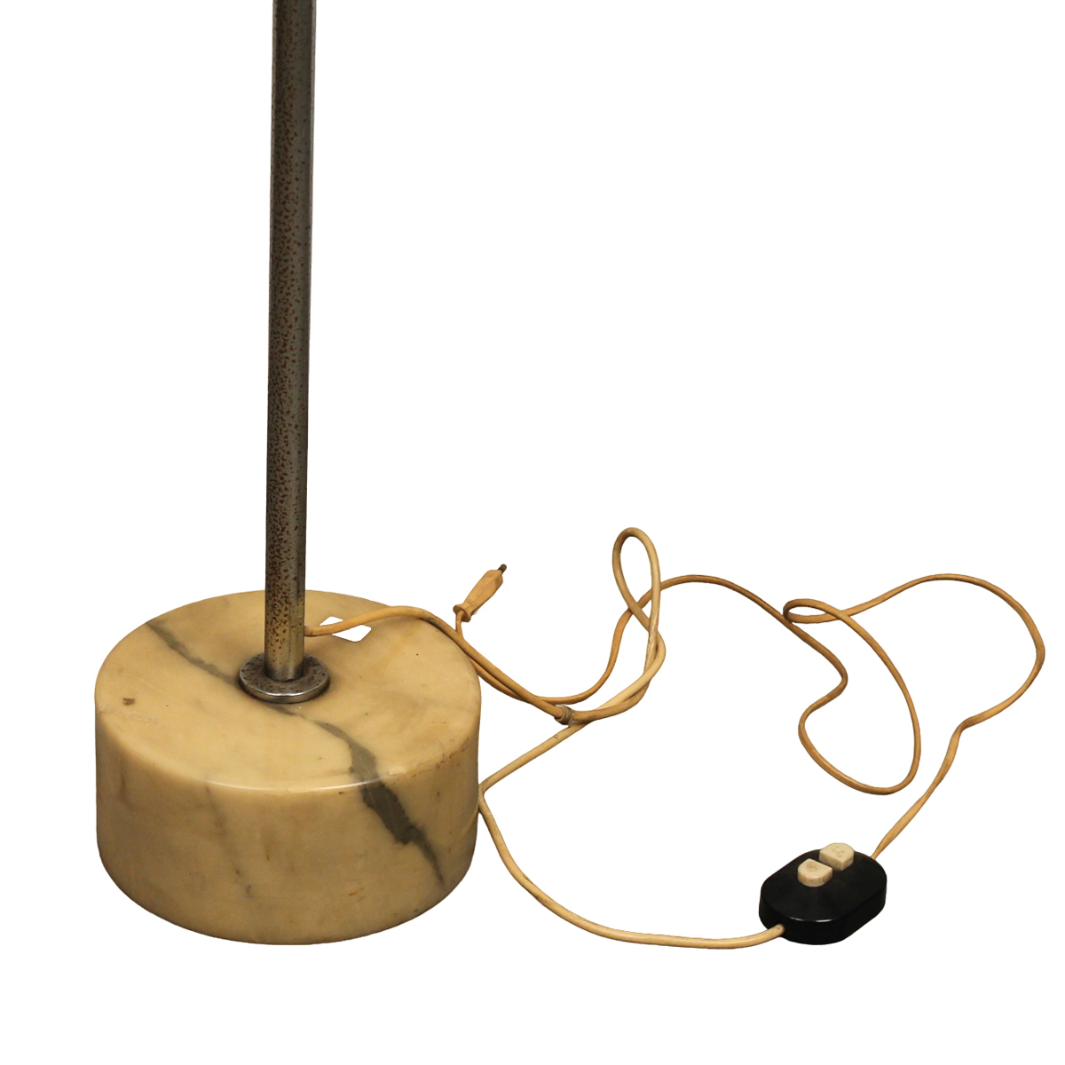 Piantana a due luci in metallo cromato, sfere in vetro e piede in marmo. Cm h 165