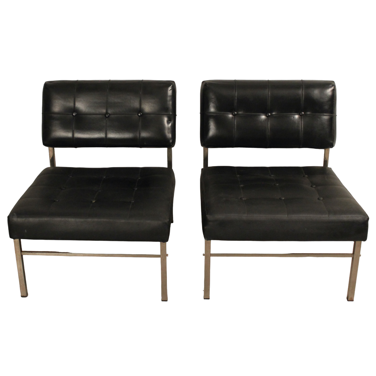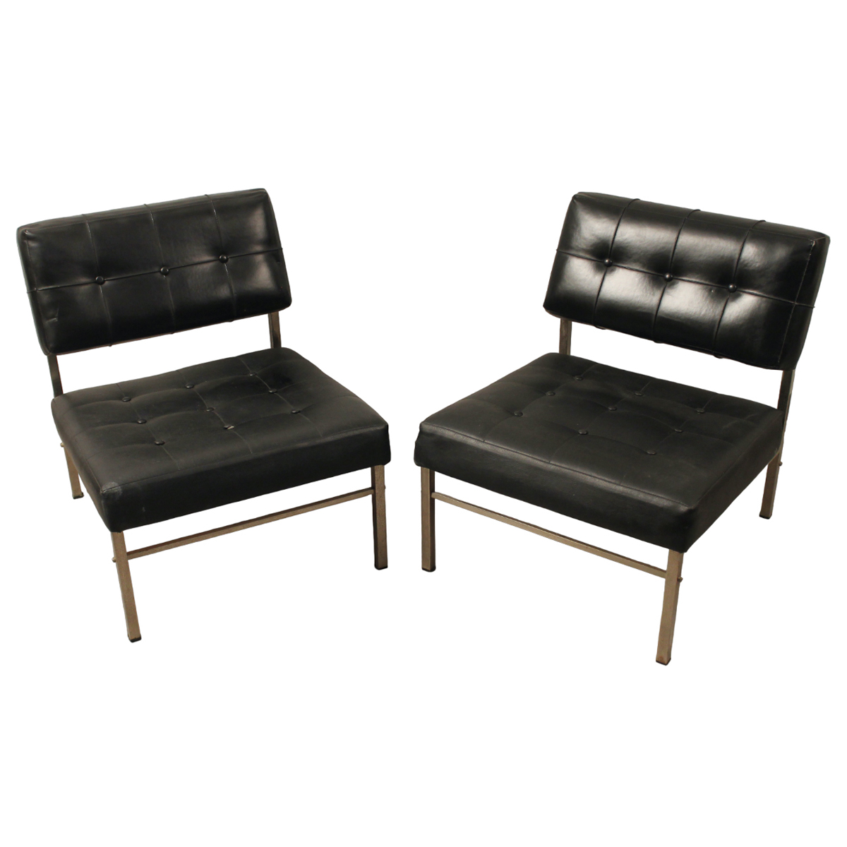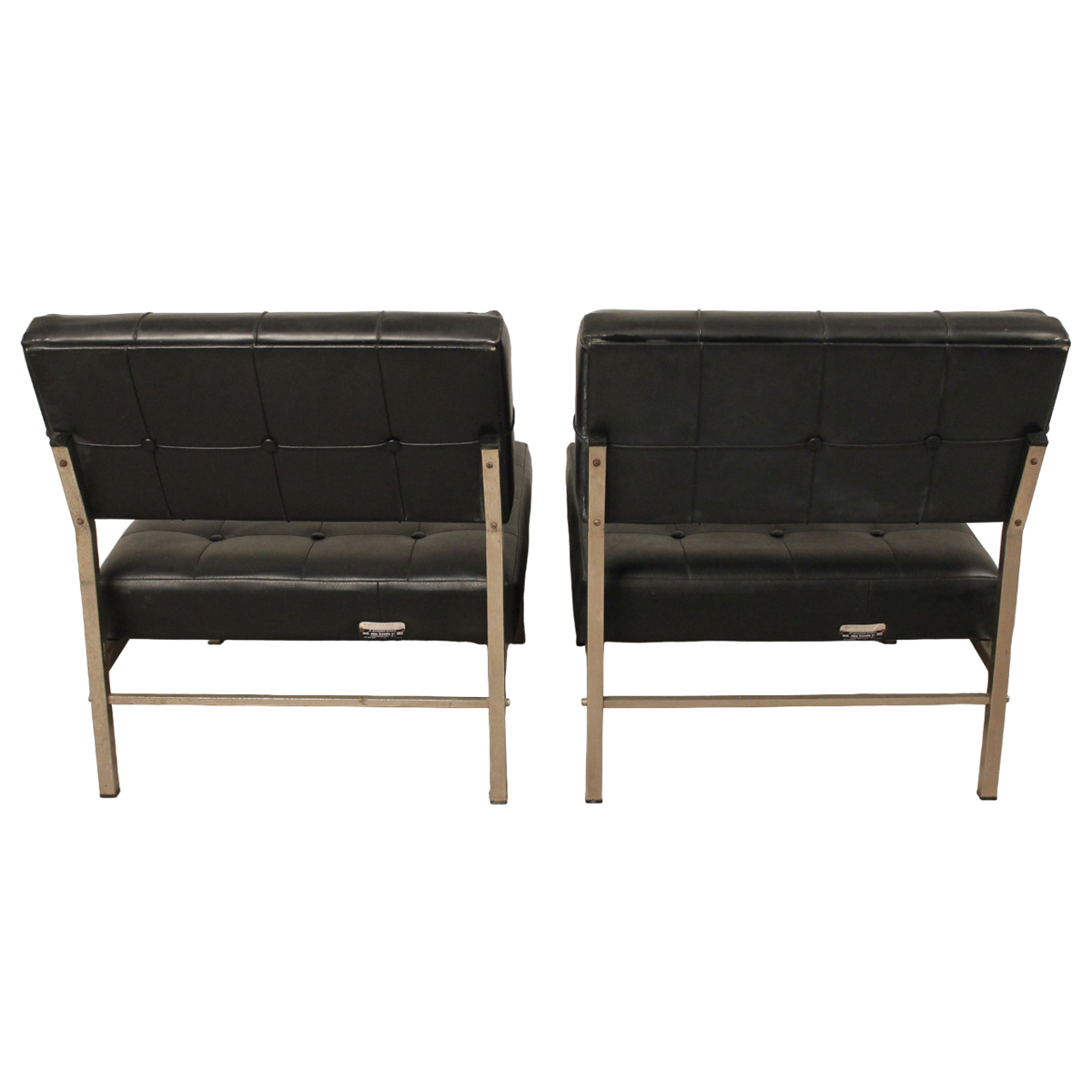 Steel and leather (the seat of one of the armchairs has a reupholstered cushion). Patent n° 5851. 60x70 h 68 cm