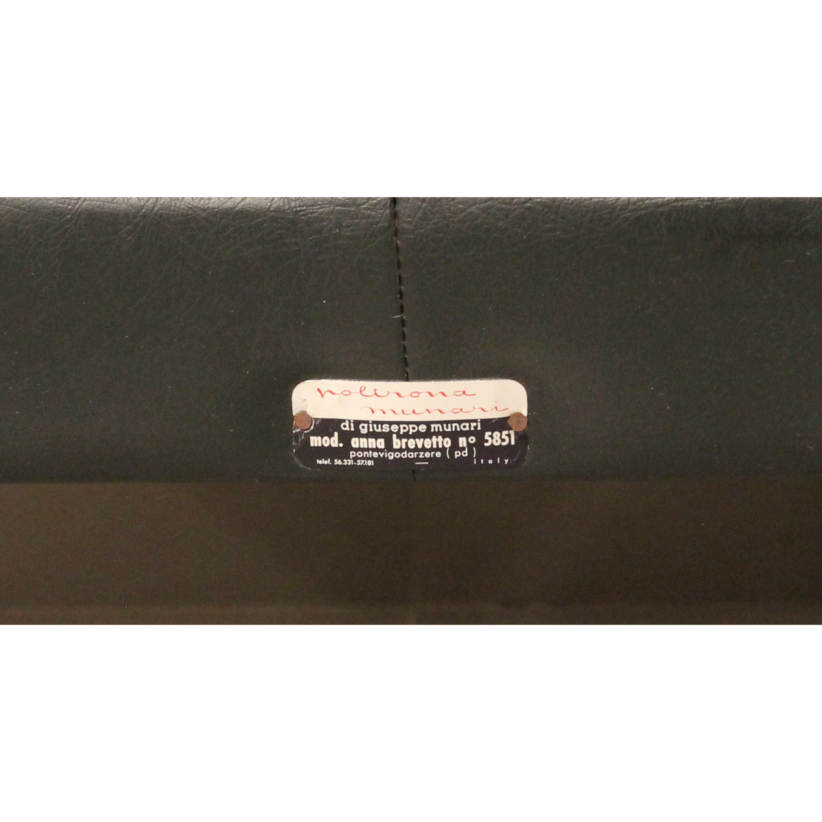 Acciaio e pelle (la seduta di una delle poltrone ha il cuscino ritapezzato). Brevetto n° 5851. Cm 60x70 h 68