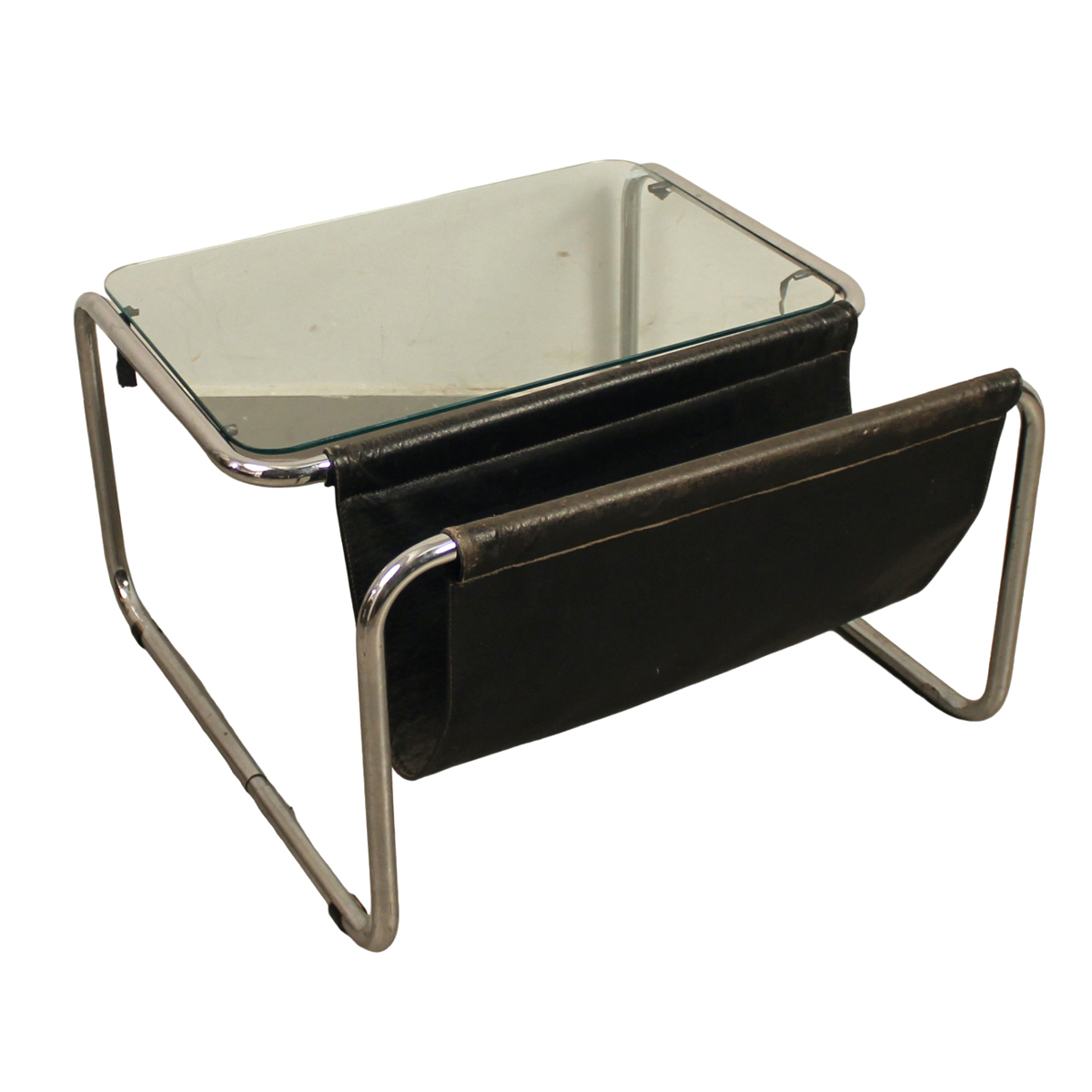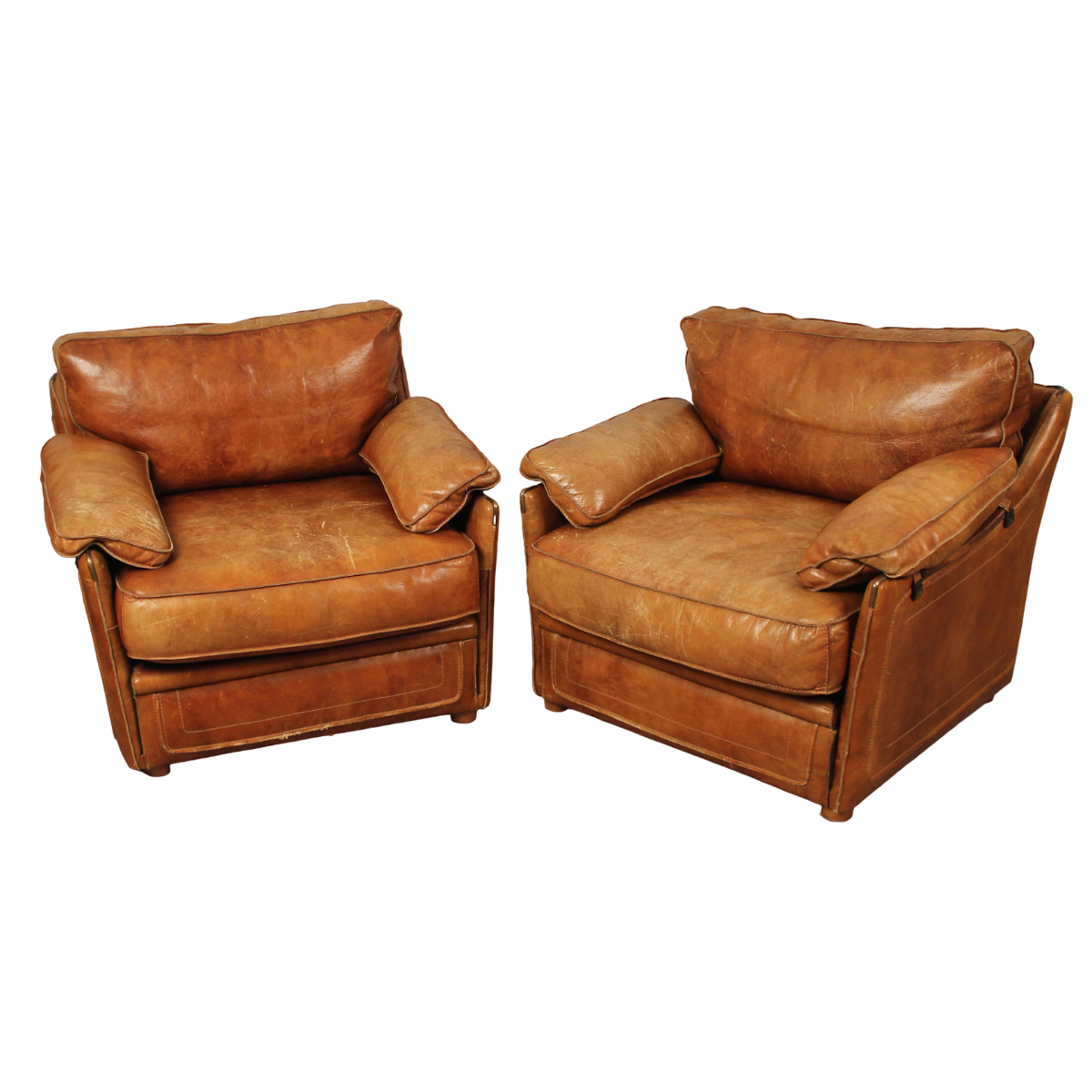 Pelle. Metà del XX secolo. Composto da: divano, due poltrone e un tavolino. Cm 210x90 h 80 (divano); cm 95x75 h 80 (tavolino); cm 70x67 h 40