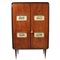 Palissandro con ripiani in vetro e cinque cassetti. Anni '50. Cm 102x40 h 160
