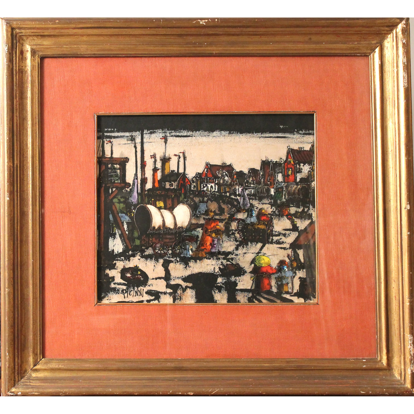 Gennaro Picinni (1933/2022) "Paesaggio con figure e casolari" - "Landscape with figures and farmhouses"