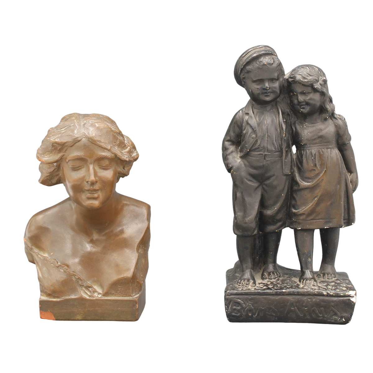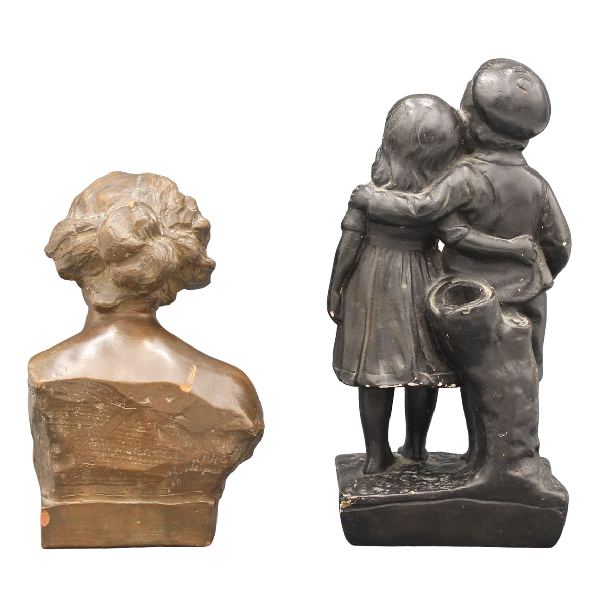 Plaster. Early 20th century. Cm h 20 (girl); cm h 26 (children)