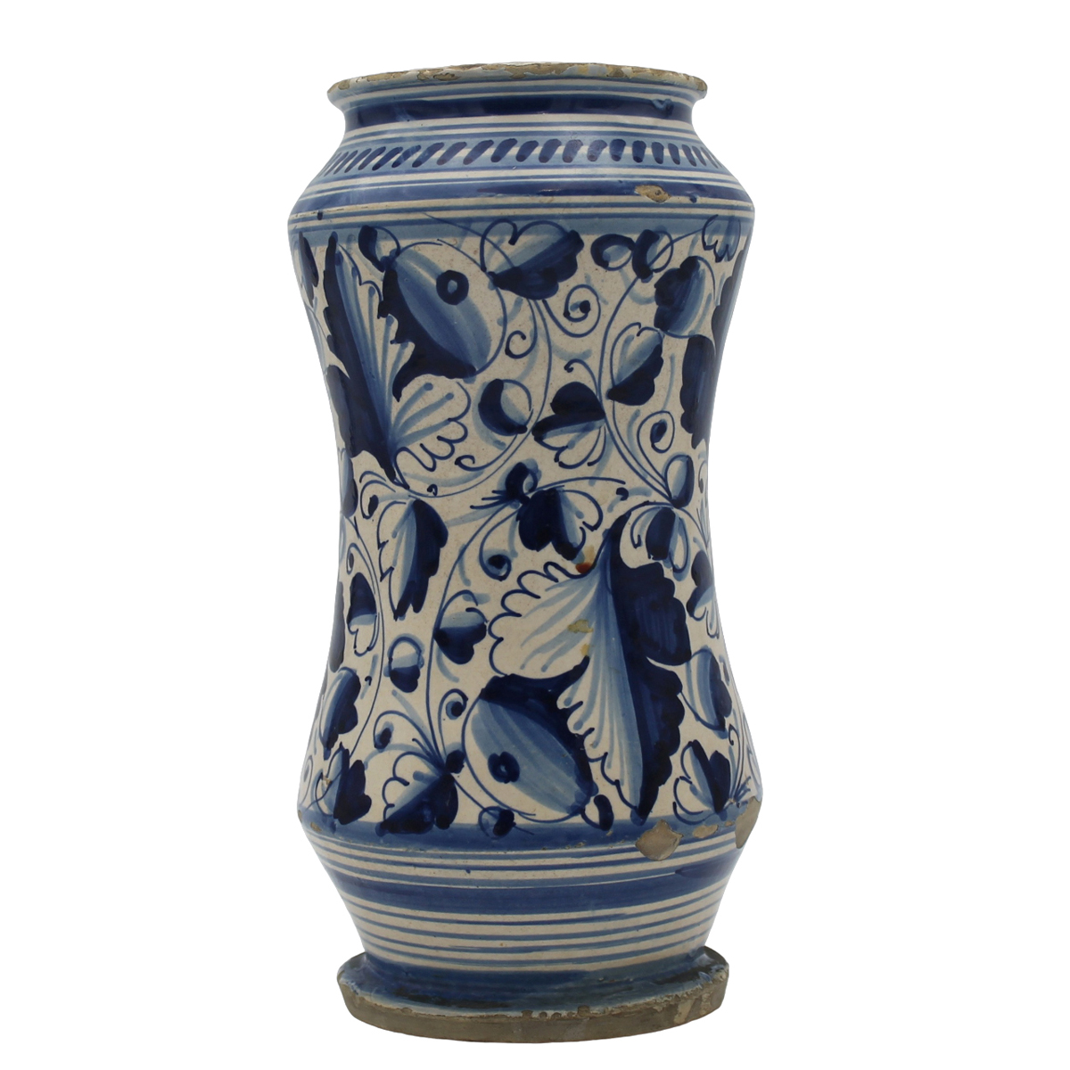 Majolica decorated with blue plant motifs on a white background. Montelupo. Late 19th century. H26 cm