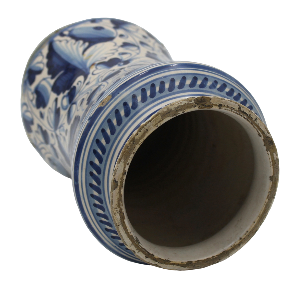 Maiolica decorata con motivi vegetali in azzurro su fondo bianco. Montelupo. Fine secolo XIX. Cm h 26