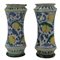 Antica maiolica decorata al centro con medaglioni a forma di scudo con all'interno figura di donna in preghiera e profilo di donna con cappello (feliure sul piede di uno dei due). Ornamenti vegetali in azzurro e limoni sul retro. Sciacca. Secolo XVII. Cm h 28