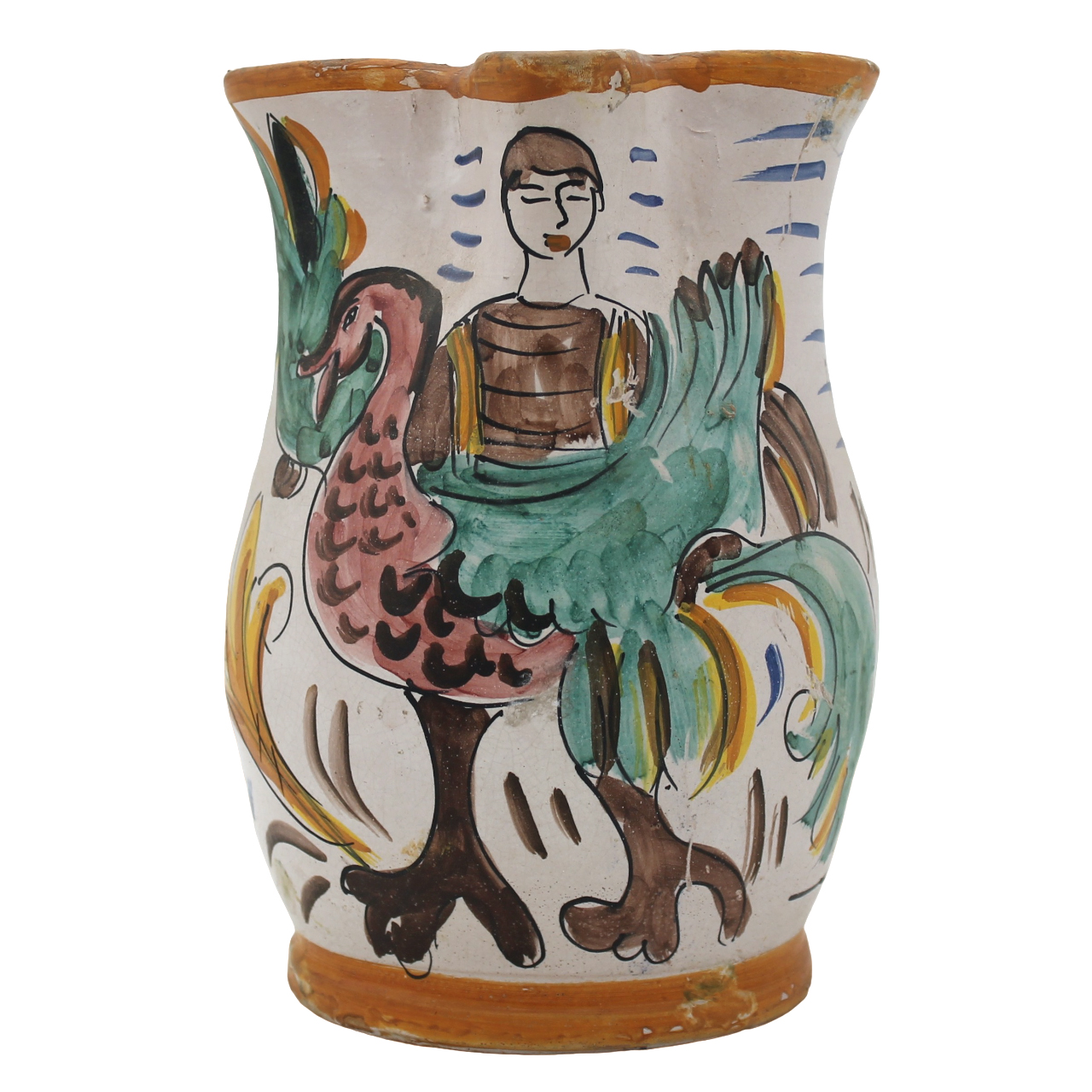 Ceramica policroma con decori vegetali policromi. Attribuita a Giuseppe Romano. Caltagirone. Secolo XX. Cm h 28