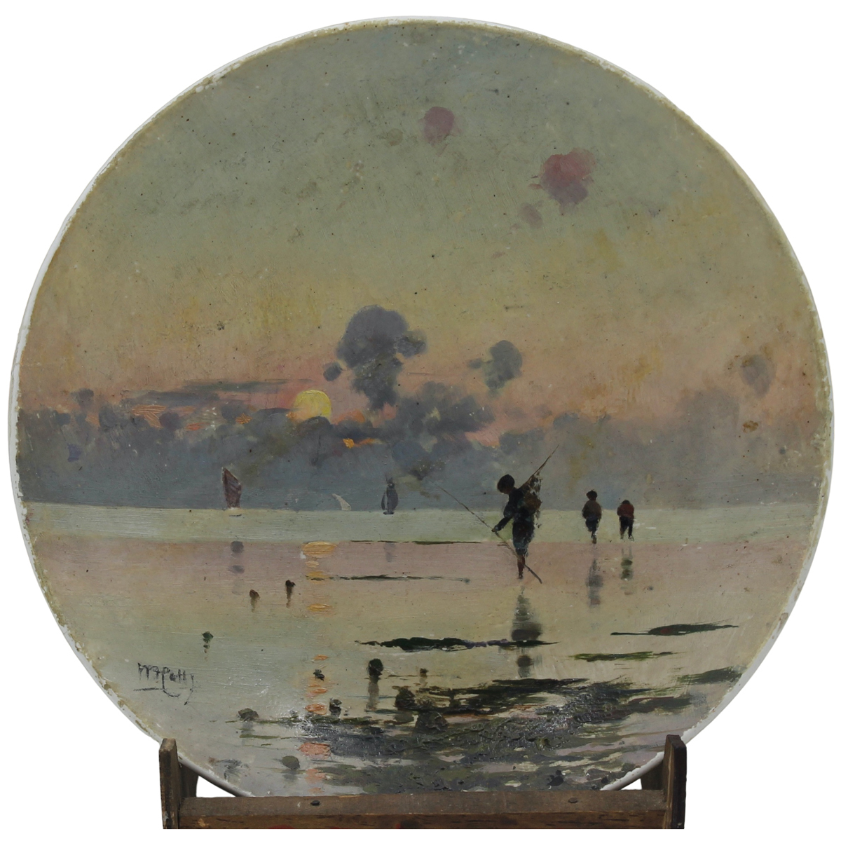 Dipinto ad olio su piatto in porcellana marcato L. & E. Giachery & C Palermo (restauri). Cm d 22,5