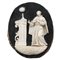 Scultura in antico avorio magistralmente scolpito in teca in legno scolpito e dorato (lievi mancanze alle dita della mano destra, teca di epoca posteriore). Opera con certificazione CITES. Cm 16x13 (statua); cm 29x25