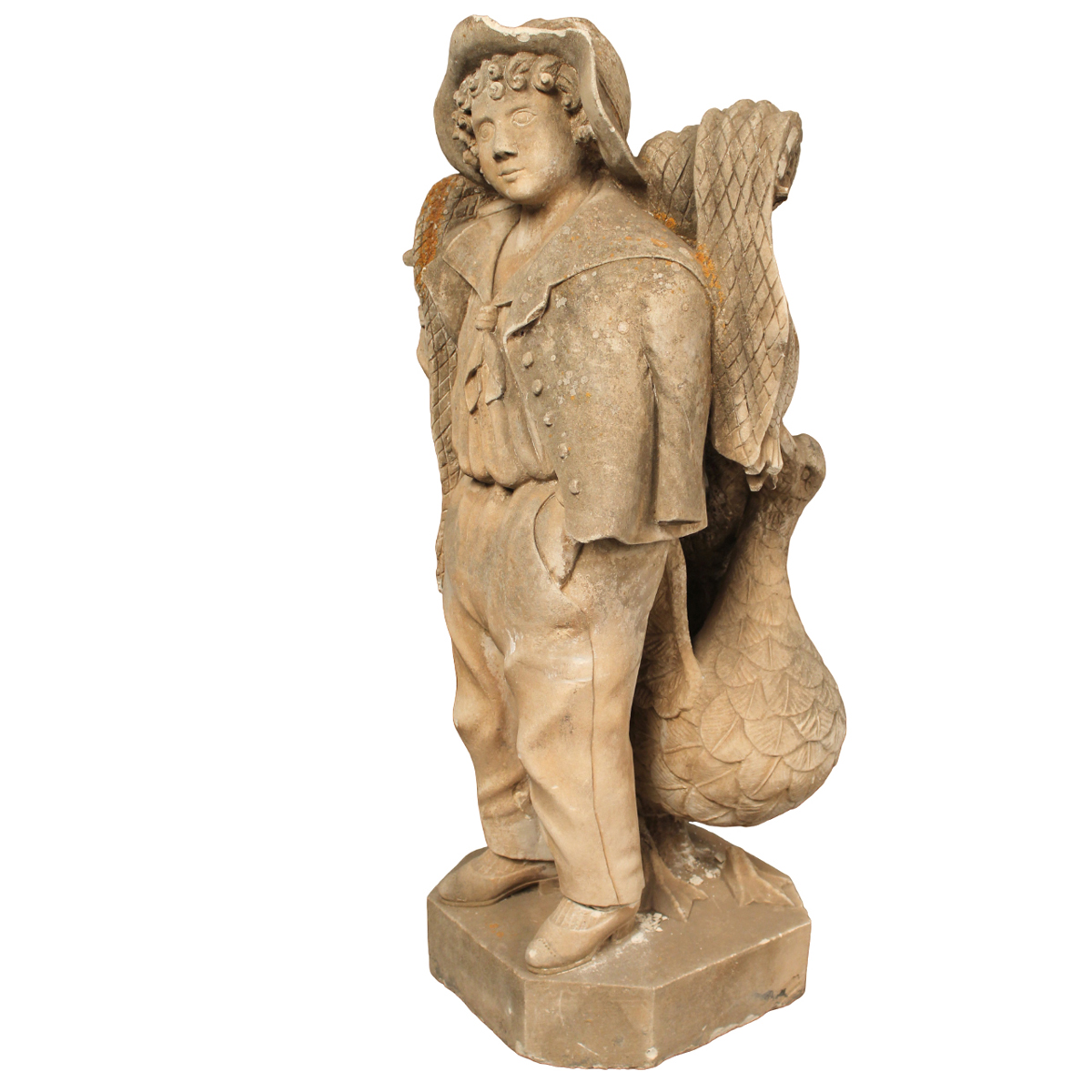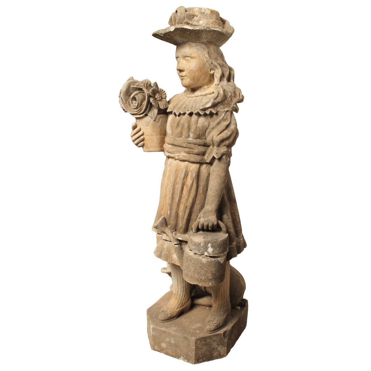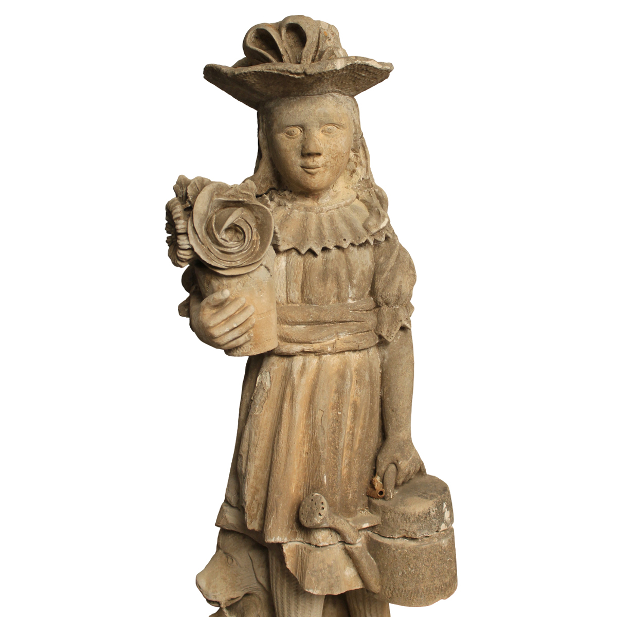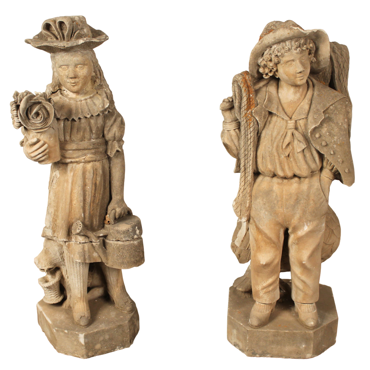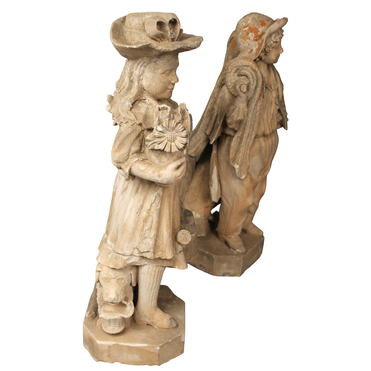 Pair of calcarenite statues (missing and broken). Early 19th century. H 102 cm