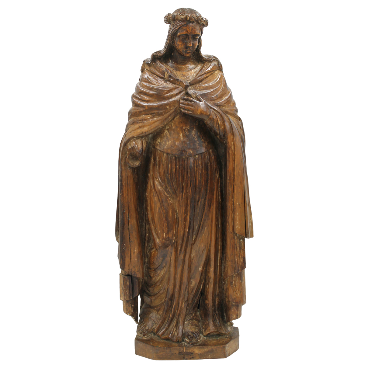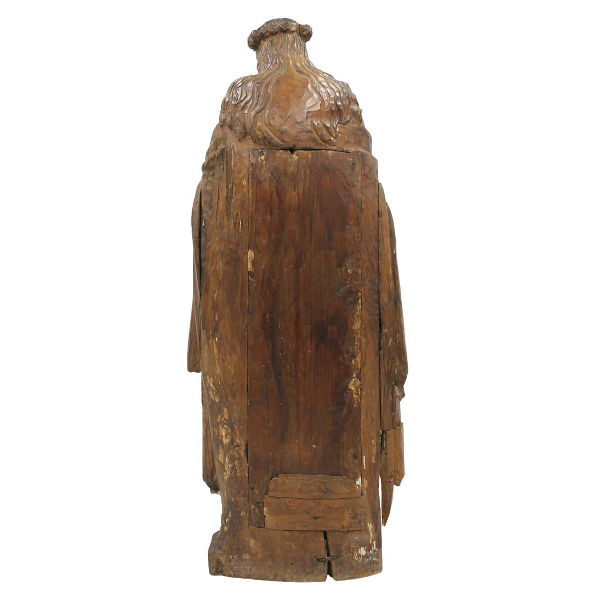 Large, masterfully carved wooden sculpture (missing right hand and minor restorations on the lower part behind). Sicily. XVIII century. H 84 cm