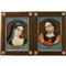 Coppia di dipinti ad olio su vetro in cornici di mogano. Cm 40x26,5