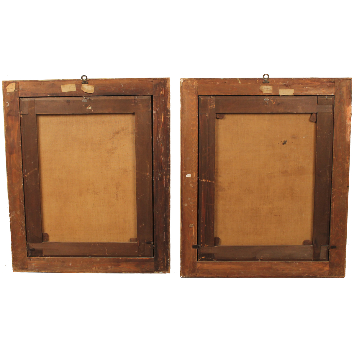 Coppia di dipinti ad olio su tela con cornici in legno dorato (restauri e rinfodero). Cm 70x55