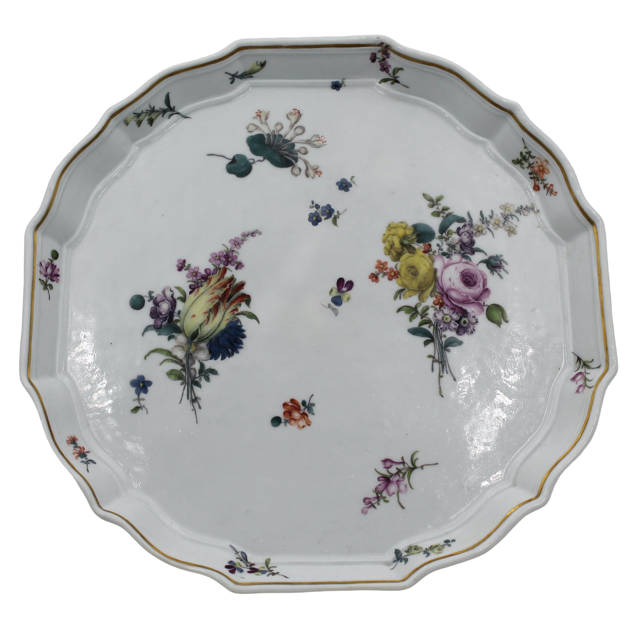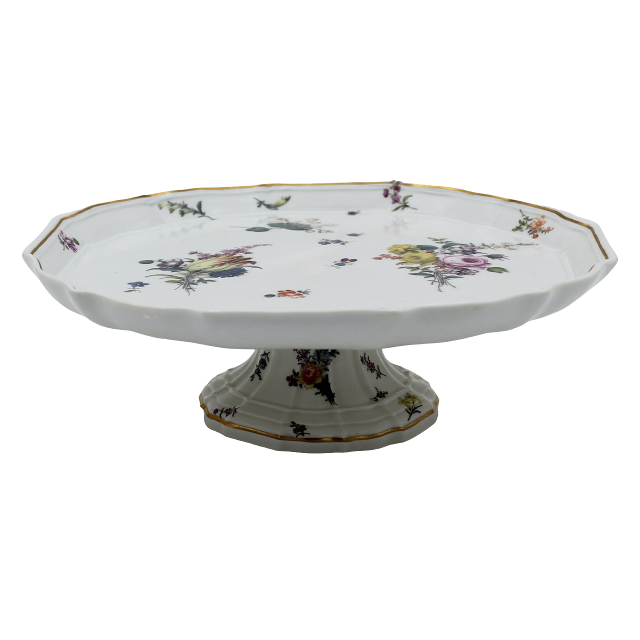 Porcellana decorata a motivi floreali policromi su fondo bianco (restauri). Meissen. Fine secolo XIX. Cm d 27 h 9