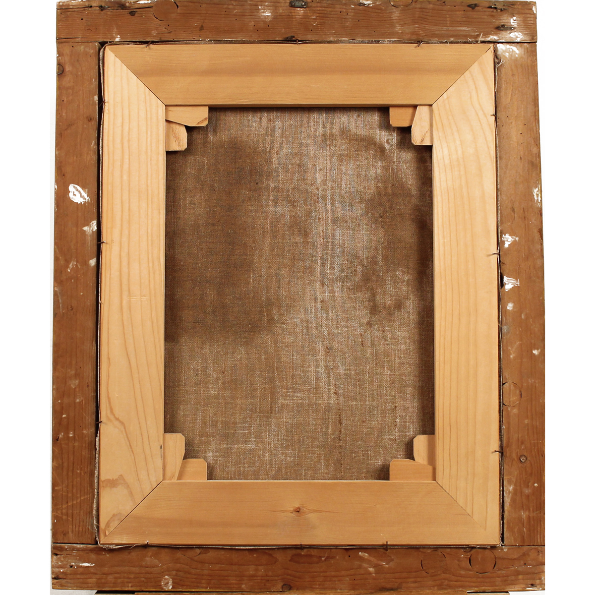 Dipinto ad olio su tela in cornice in legno dorato a canna spaccata (restauri e rifacimento del telaio). Cm 72x56