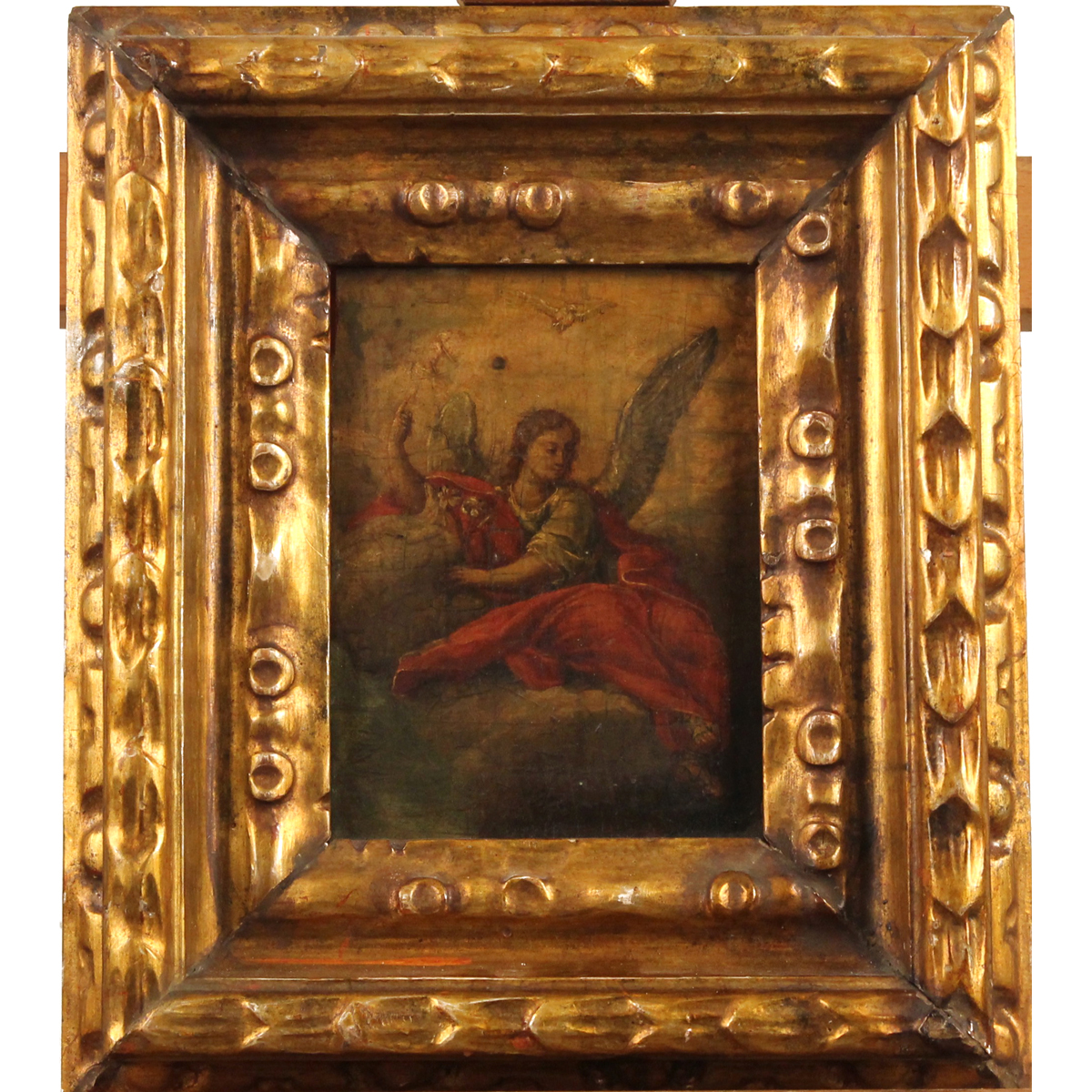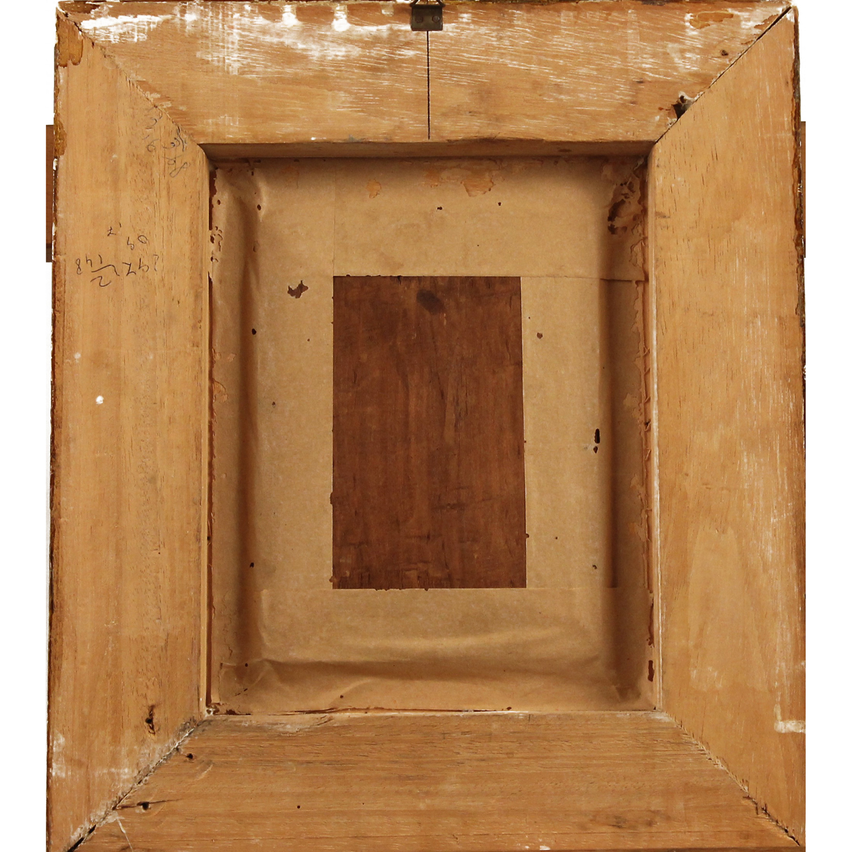 Oil painting on panel in a carved and gilded wooden frame. 18x13 cm