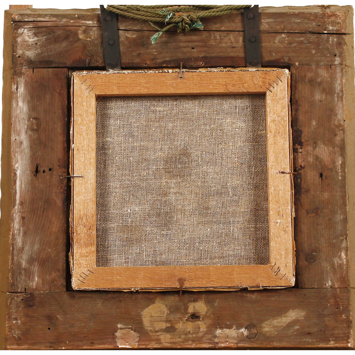 Dipinto ad olio su tela in cornice in legno scolpito e dorato con decorazioni floreali (rinfoderato). Cm 29x29