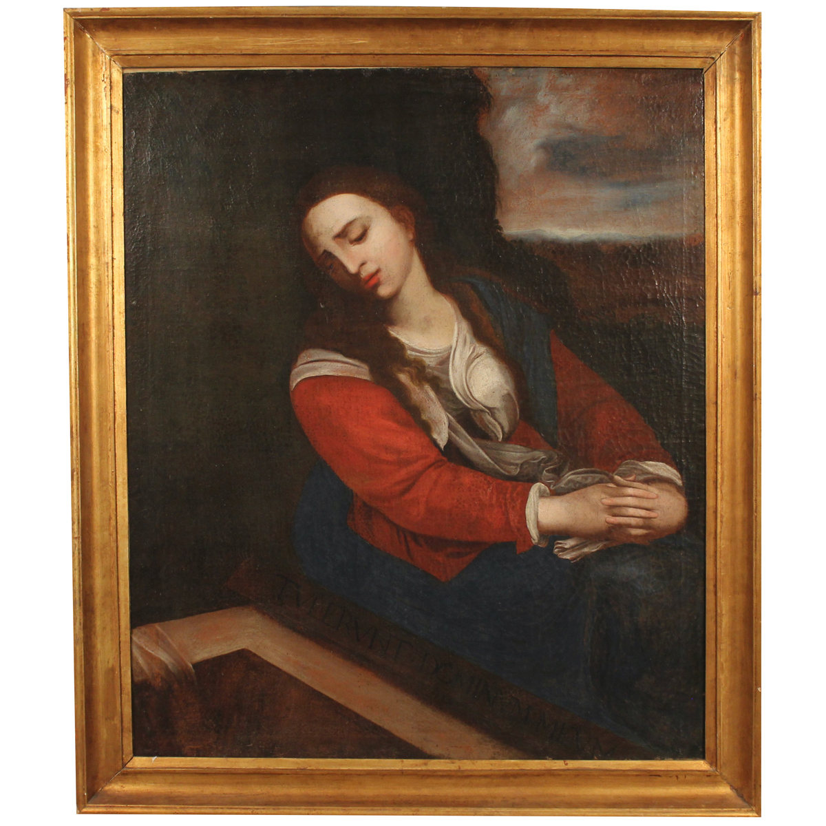 Dipinto ad olio su tela in cornice in legno dorato (restauri e rifoderato)Cm 100x83,5